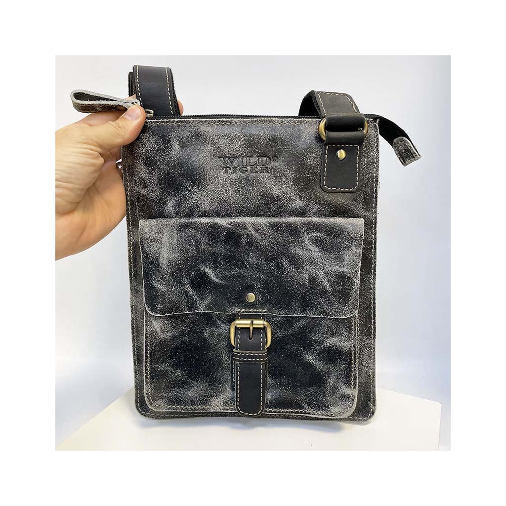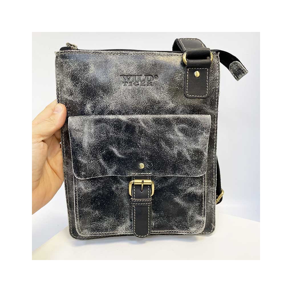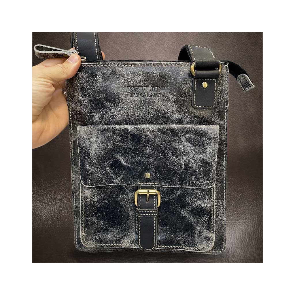 Pánská černá WILD Leather kožená crossbody messenger taška přes rameno | velikost M středně velká Bez personalizace - individuální přání řešíme po domluvě.