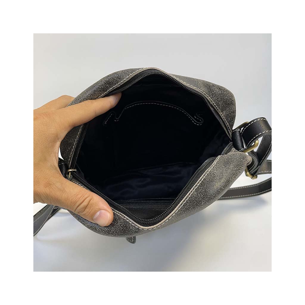 Crossbody kožená messenger taška je v příjemném broušeném černém odstínu. Přední kapsa na zip, Po otevření celé tašky na zip máte další kapsu a vnitřní klasické uspořádání, které lze celé zapnout na zip. Výhodou je i další kapsa na zip na zadní straně.