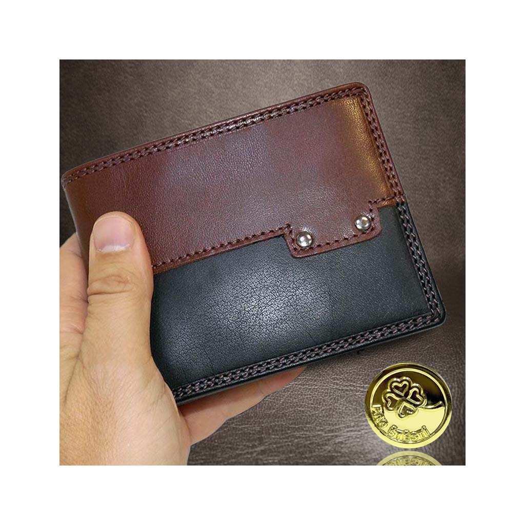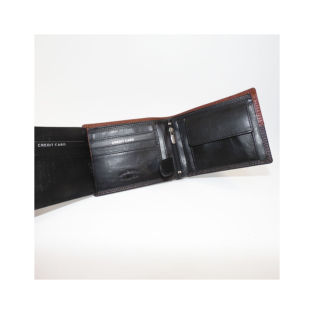 Pánská černo hnědá kožená peněženka PREMIUM Leather s monogramem (ražba) + Akce - zlatá mince Pro štěstí ZDARMA