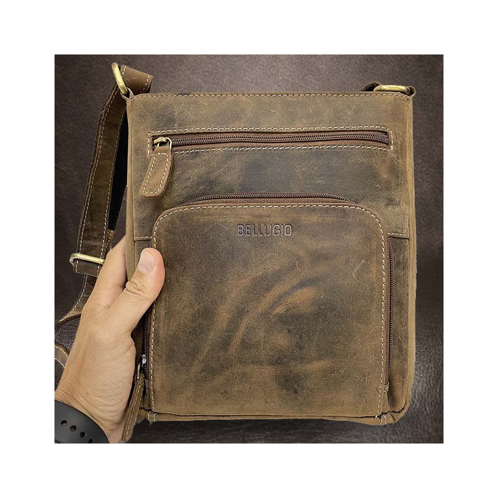 Pánská hnědá BELLUGIO Leather kožená crossbody messenger taška přes rameno | velikost L velká Bez personalizace - individuální přání řešíme po domluvě.