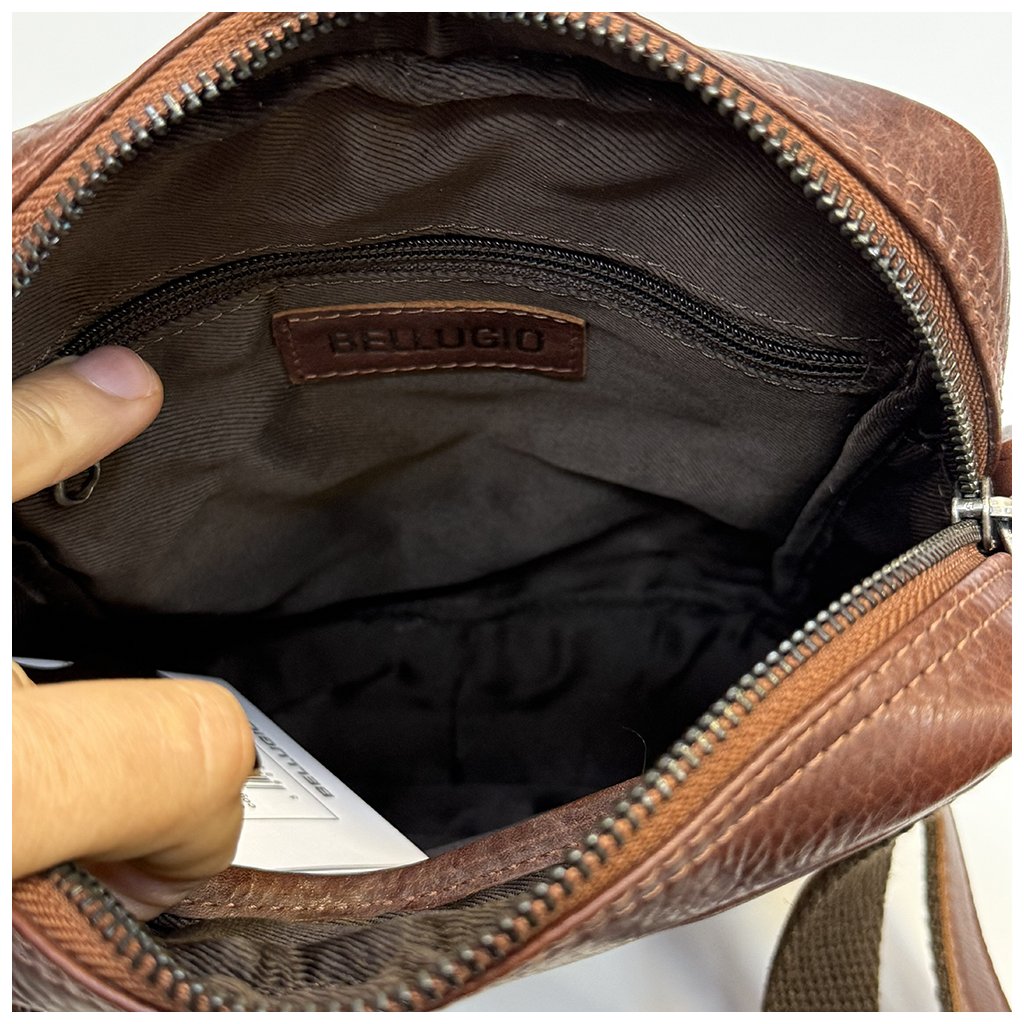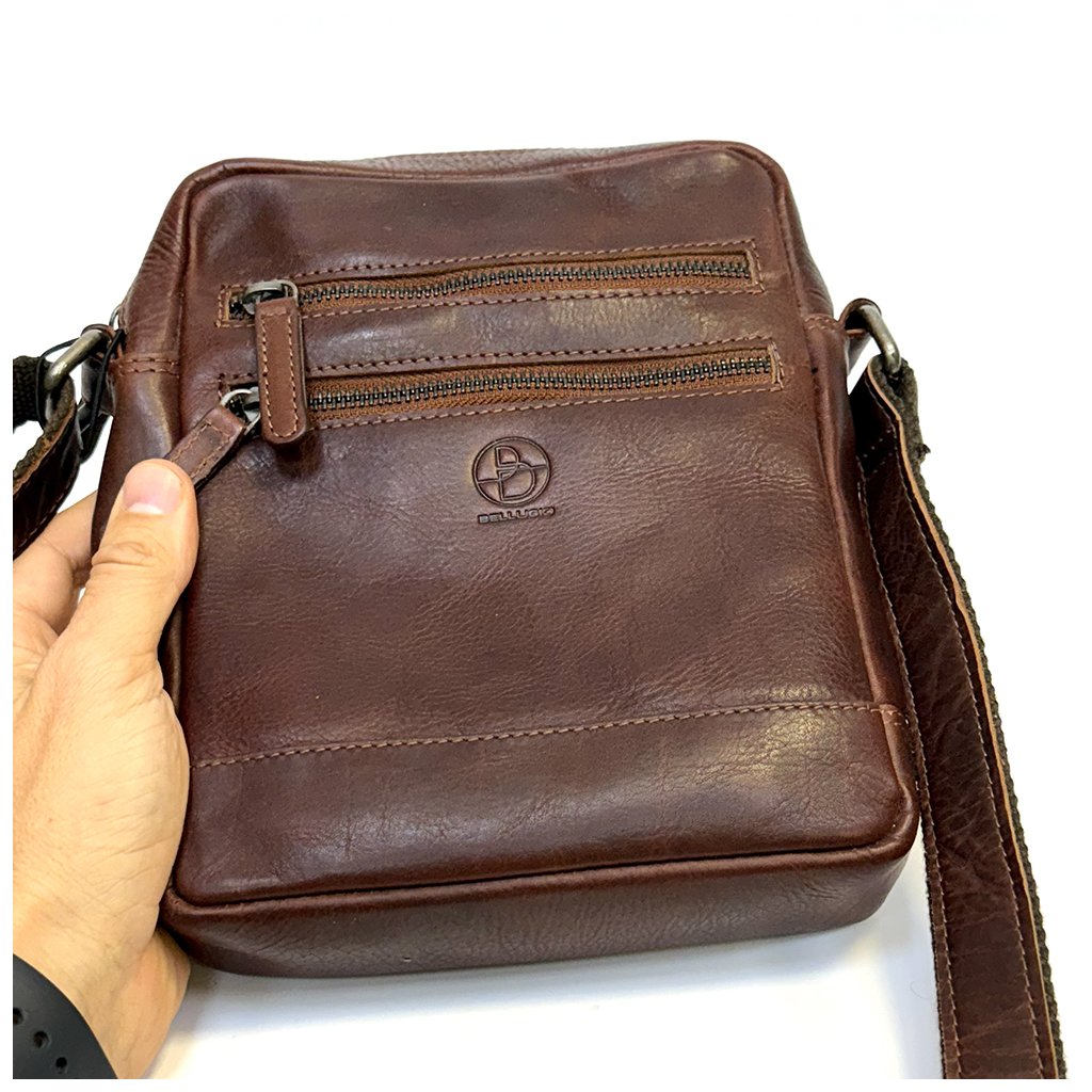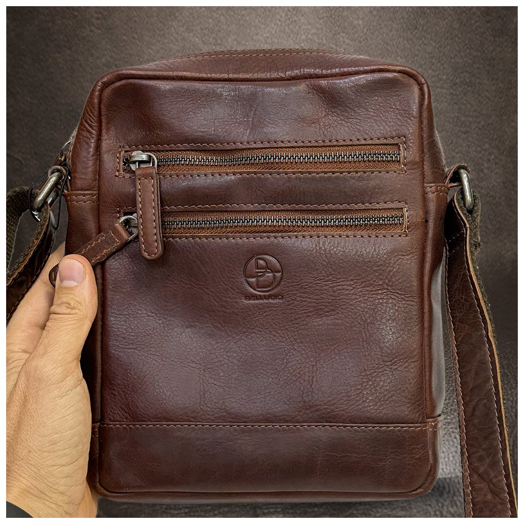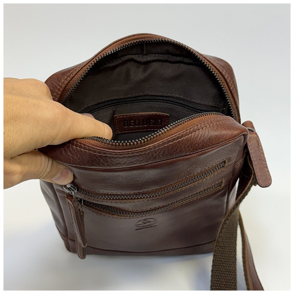 Pánská kožená crossbody messenger taška přes rameno – bordo hnědá