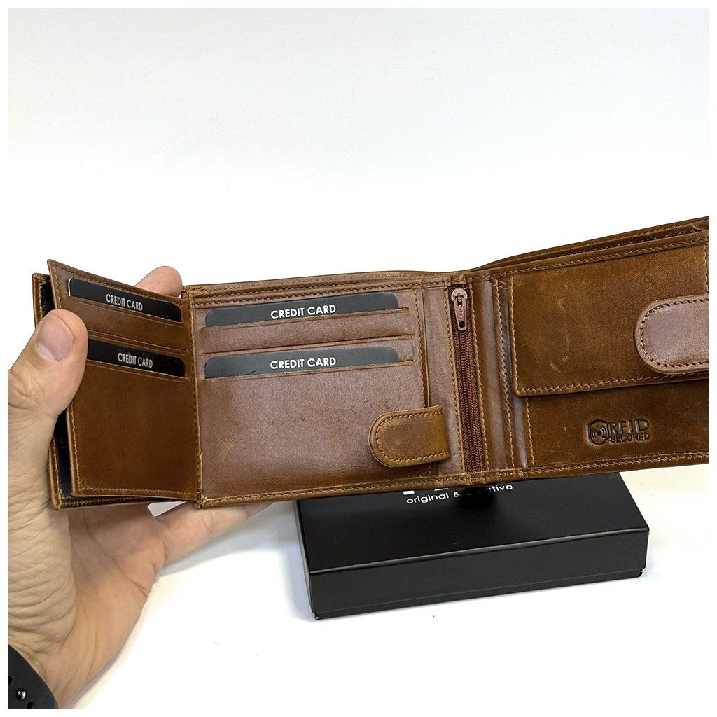 Pánská hnědá kožená peněženka PERSONIQ Be Leather RFID s monogramem (ražba) + Akce - zlatá mince Pro štěstí ZDARMA