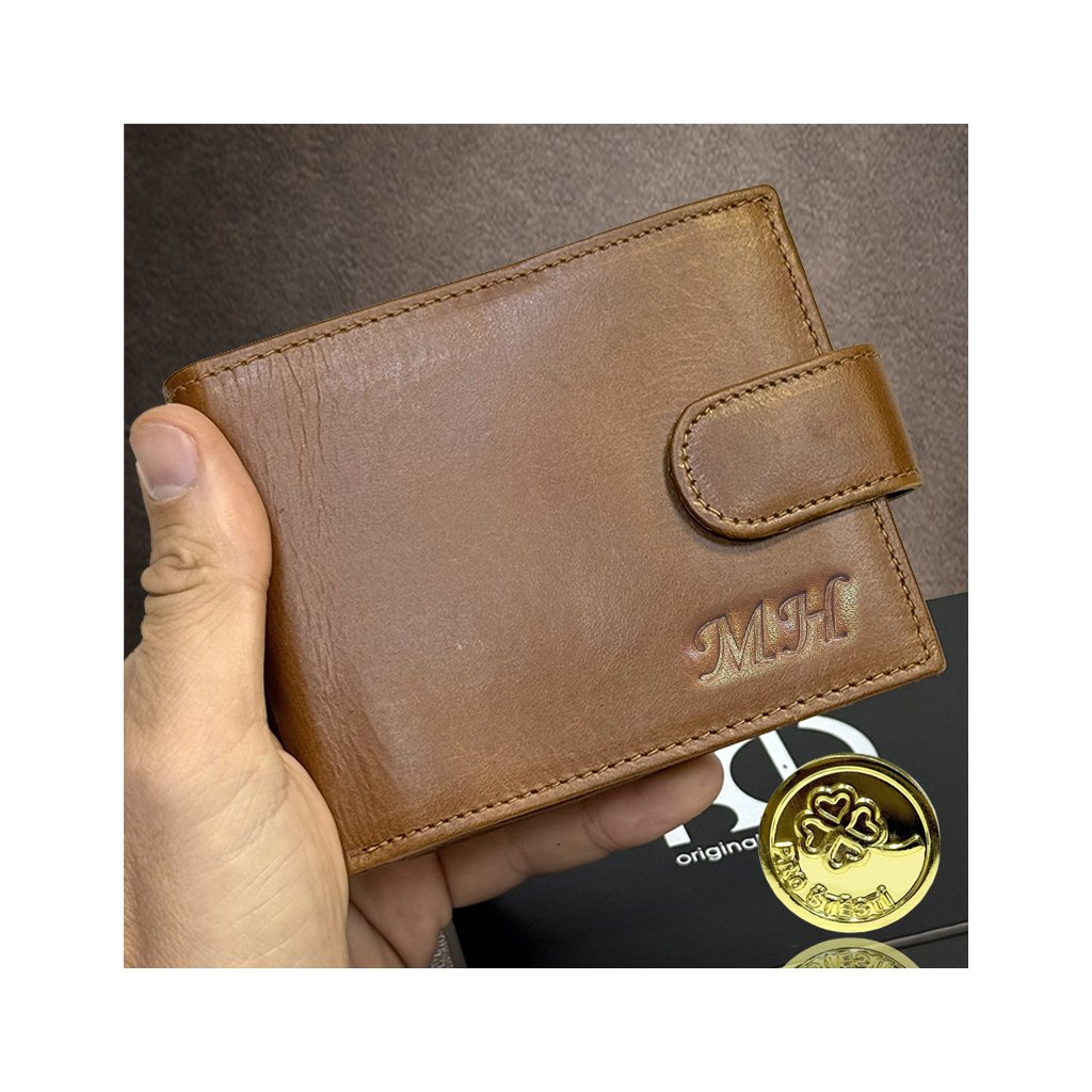Pánská hnědá kožená peněženka z pravé kůže s možností ražby vlastního monogramu – elegantní, osobní a vždy originální.