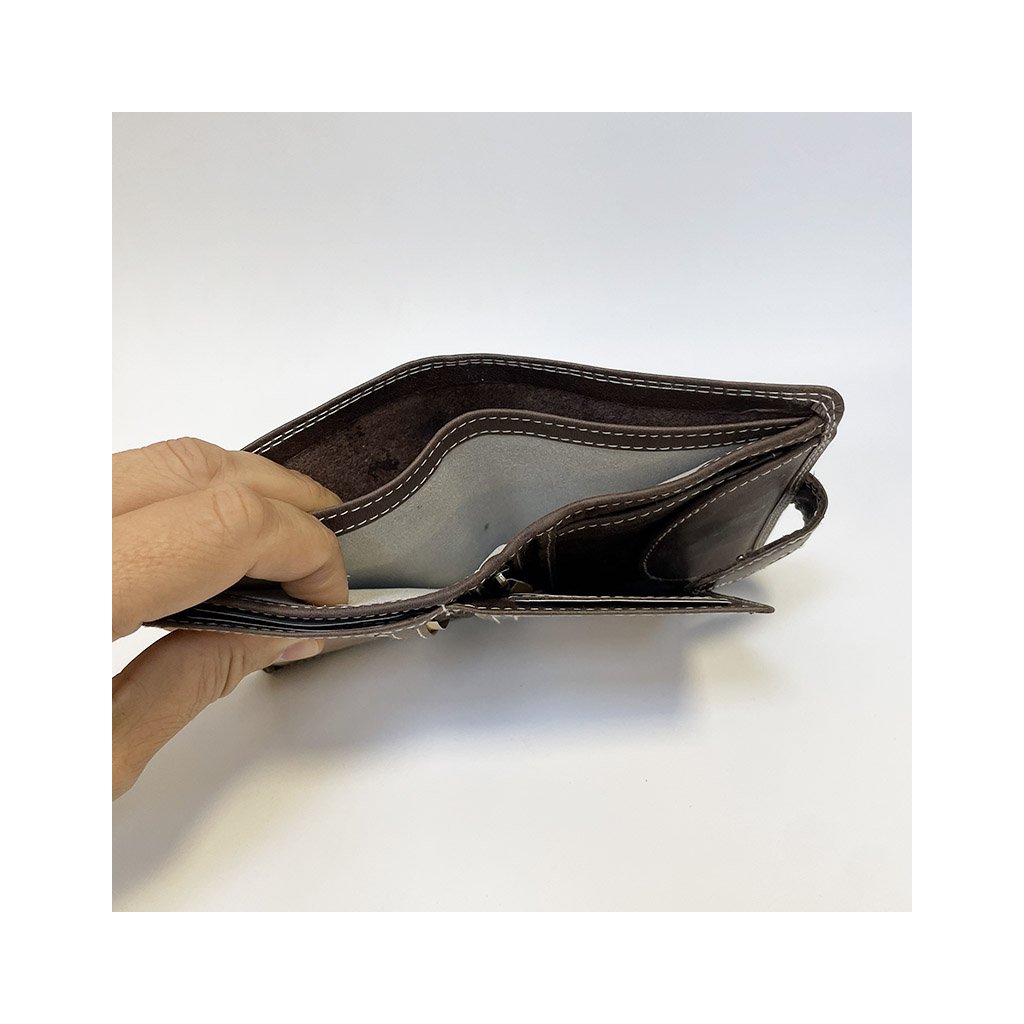Tato tmavě hnědá peněženka GURU je vyrobena z kvalitní pravé kůže a nabízí možnost ražby vlastního monogramu, která z ní činí výjimečný a osobní doplněk. Ideální pro muže, kteří ocení spojení tradičního řemesla a jedinečnosti. Peněženka s vaším monogramem je stylová a zároveň praktická – nosí vaše finance s elegancí.