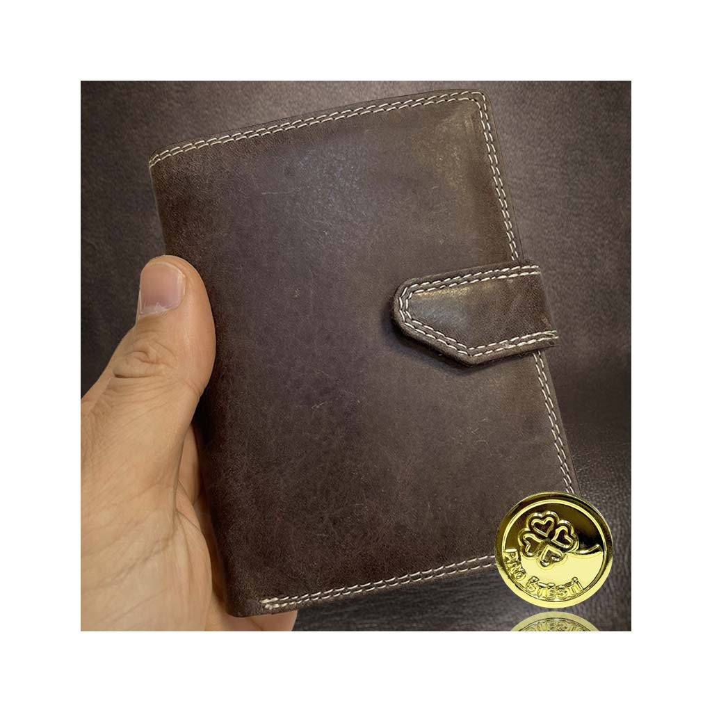 Pánská hnědá kožená peněženka Guru Leather s monogramem (ražba) + Akce - zlatá mince Pro štěstí ZDARMA