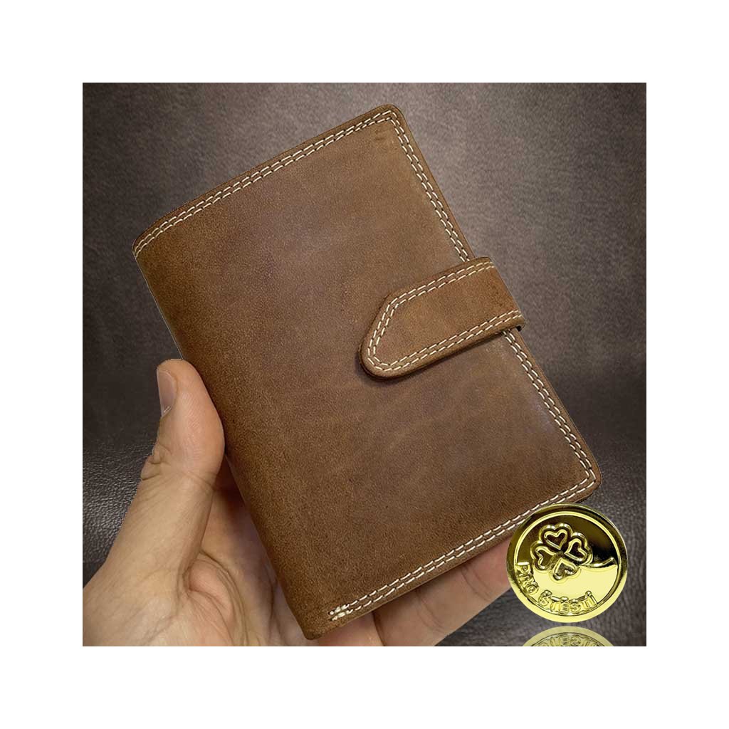 Pánská hnědá kožená peněženka GURU Leather s monogramem (ražba) + Akce - zlatá mince Pro štěstí ZDARMA