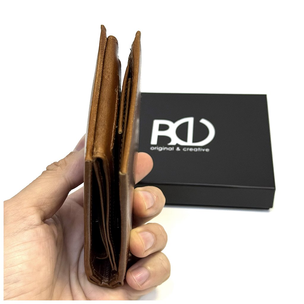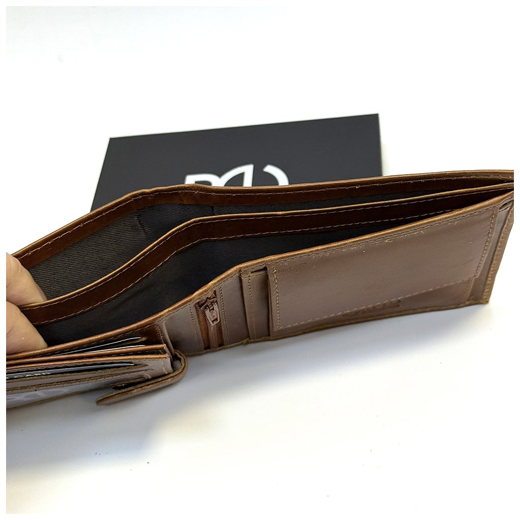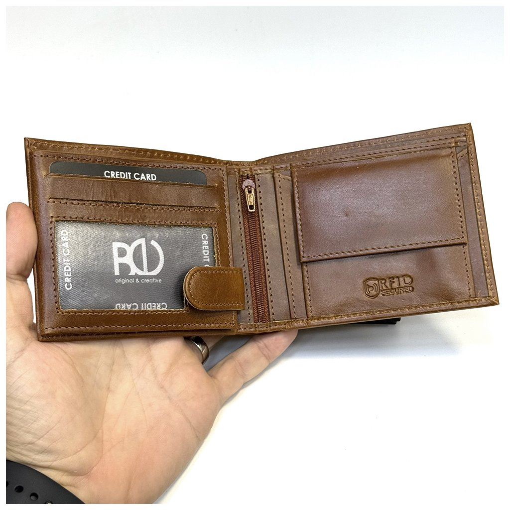 Pánská hnědá kožená peněženka BEORIGINAL Leather s designovým drukem a ochranou RFID, doplněná ražbou vlastního monogramu. Kvalita a styl v dokonalé harmonii.
