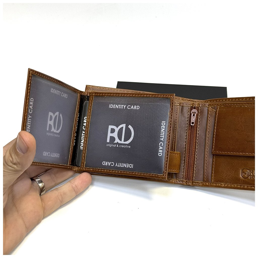 Pánská hnědá kožená peněženka PERSONIQ BeLeather RFID s gravírováním textu, monogramu, fotky + Akce - zlatá mince Pro štěstí ZDARMA