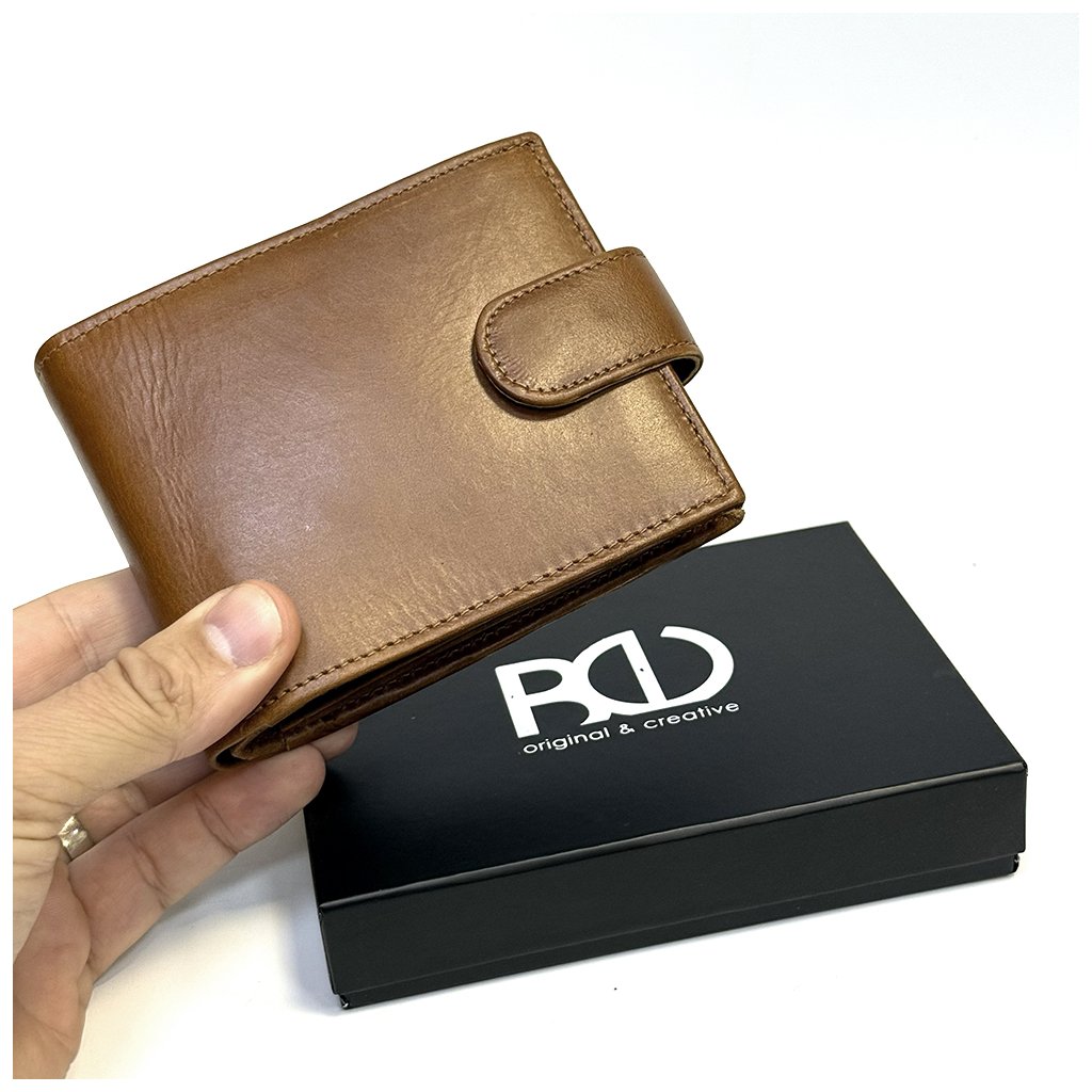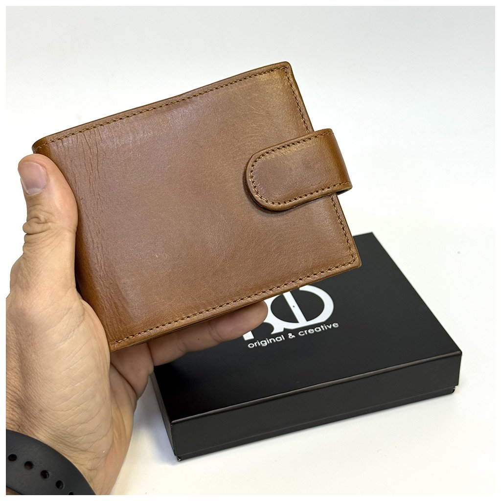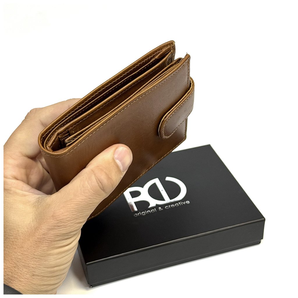 Tmavě hnědá pánská NAPPA kožená peněženka RFID BEORIGINAL se zapínáním, ražbou monogramu a možností laserového textu uvnitř. Prémiová kvalita a osobní styl.