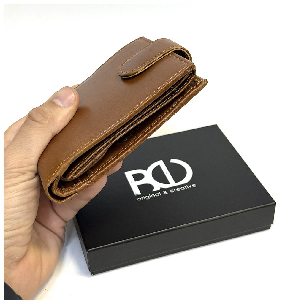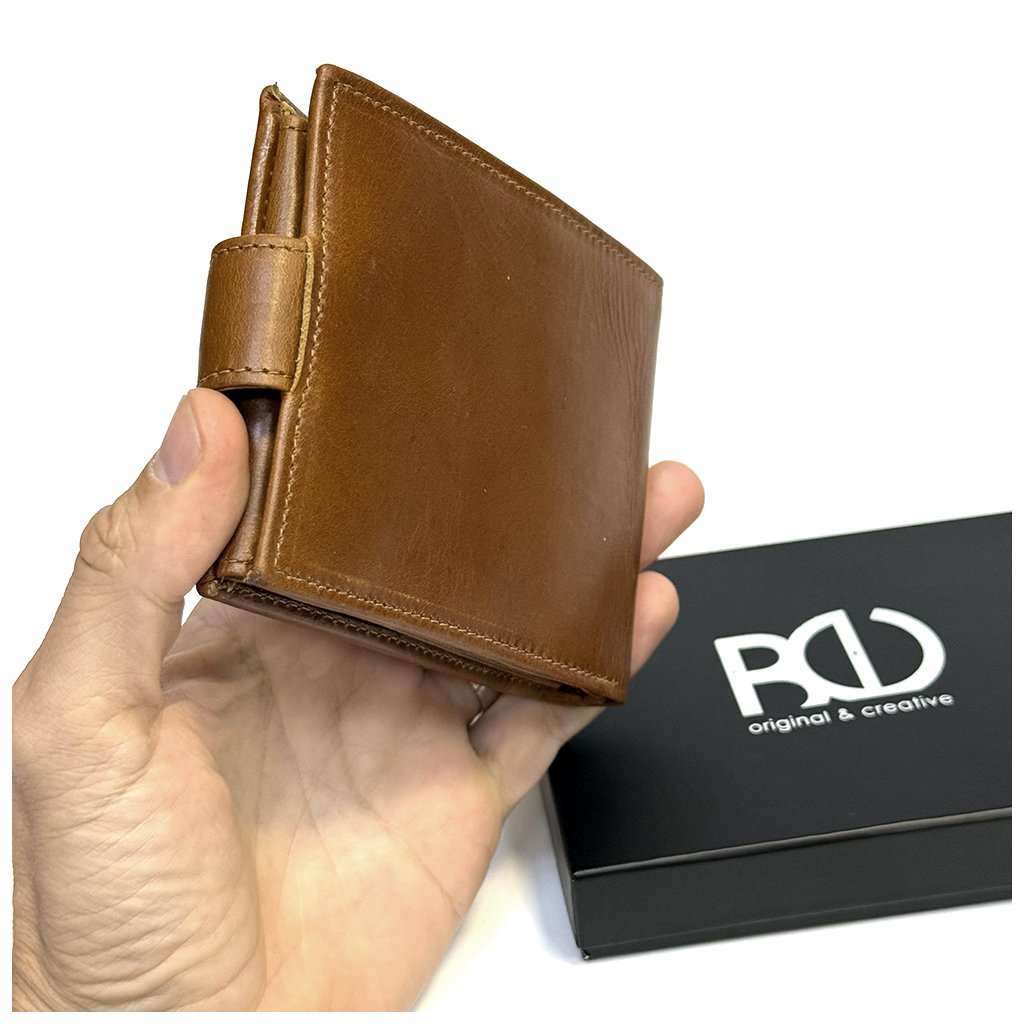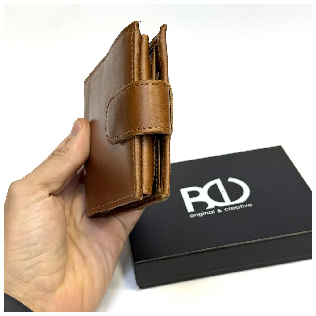 Tmavě hnědá pánská NAPPA kožená peněženka RFID BEORIGINAL se zapínáním, ražbou monogramu a možností laserového textu uvnitř. Prémiová kvalita a osobní styl.