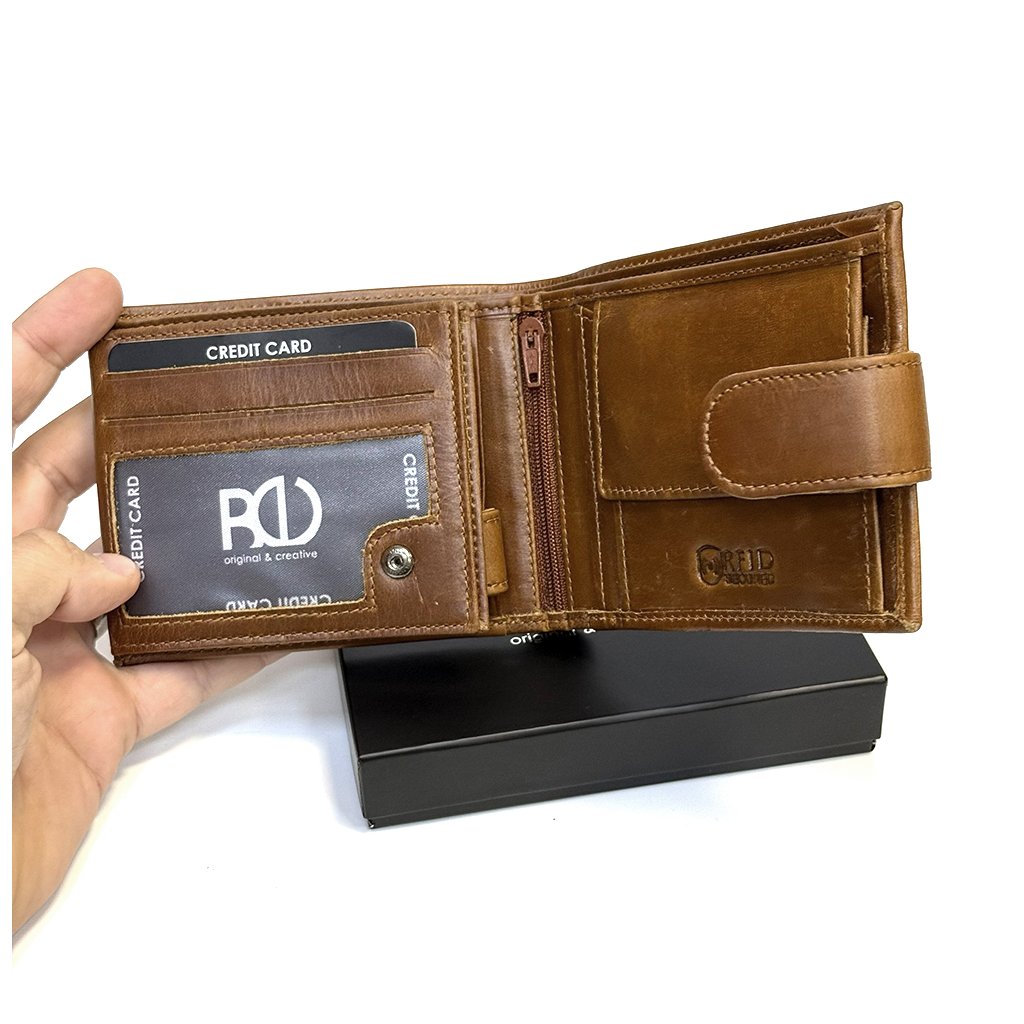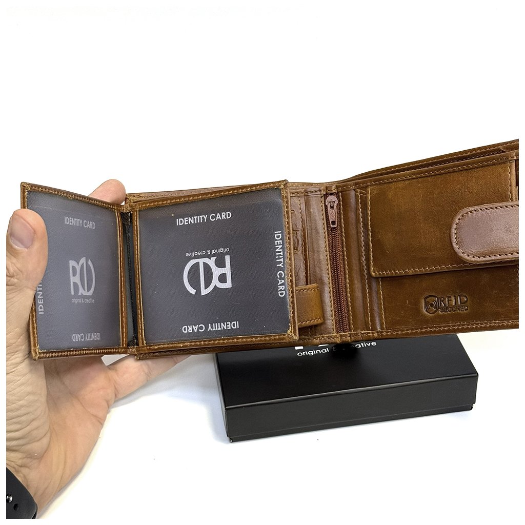 Luxusní pánská kožená peněženka z pravé hovězí kůže s RFID ochranou a možností ražby vlastního monogramu i vnitřní personalizace. Dodávána v dárkovém balení.