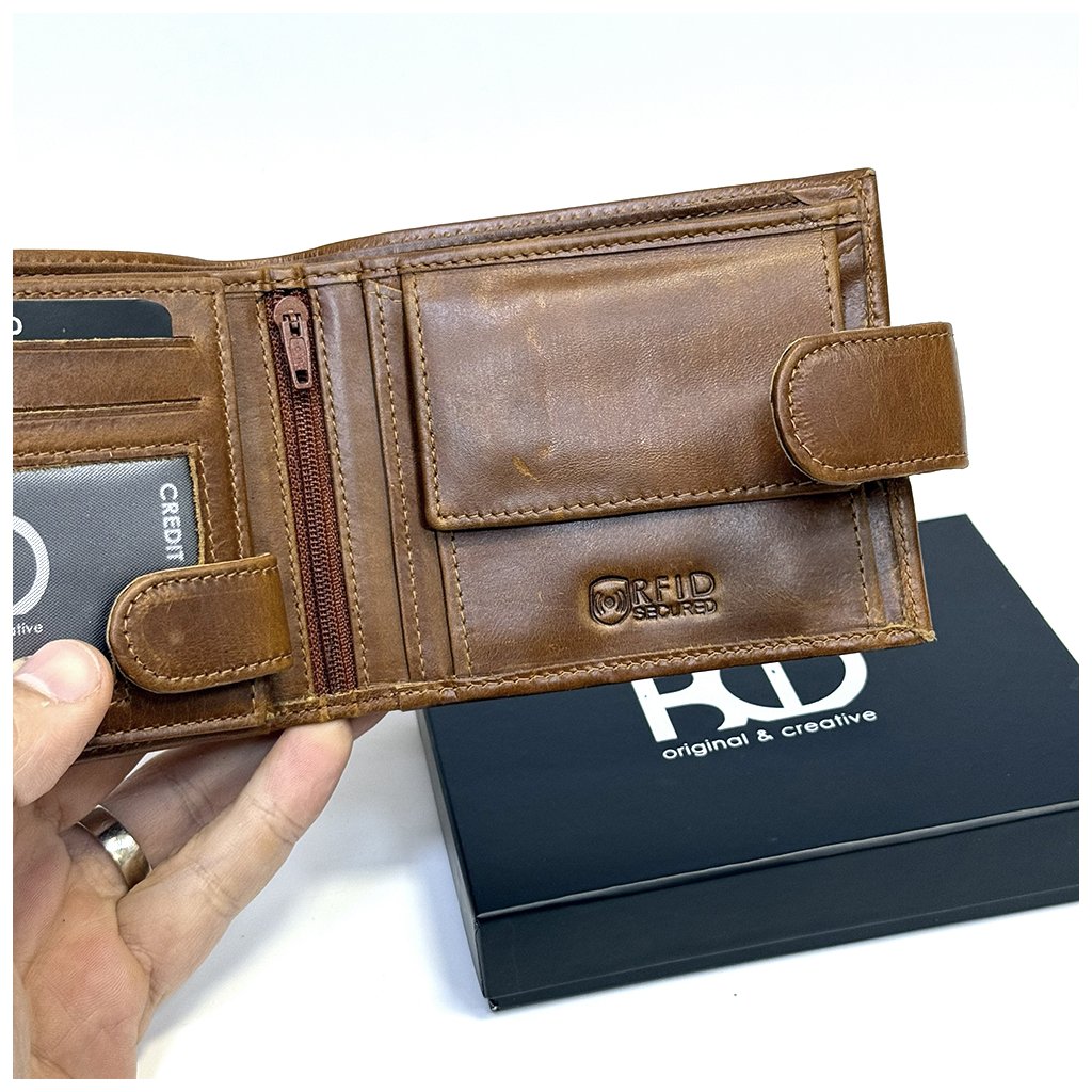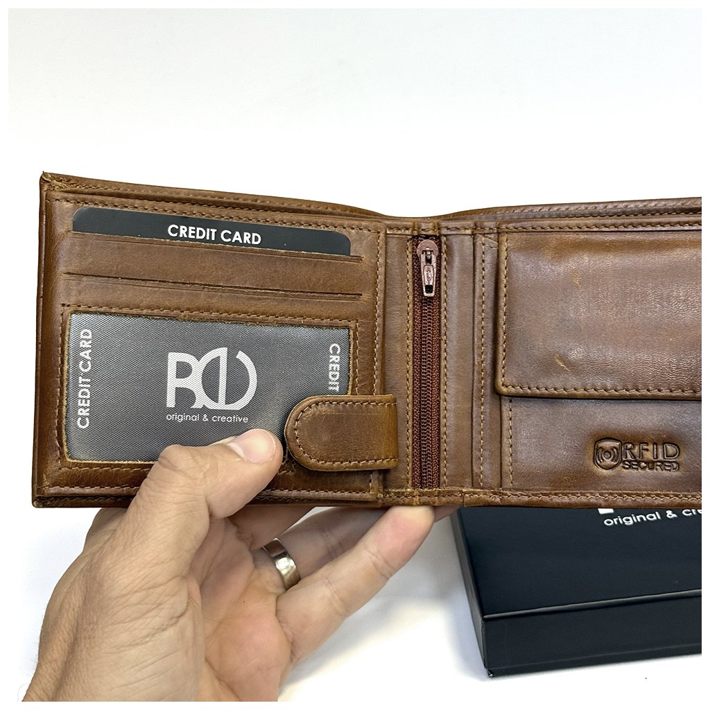 Pánská hnědá kožená peněženka PERSONIQ BeLeather RFID s gravírováním textu, monogramu, fotky + Akce - zlatá mince Pro štěstí ZDARMA