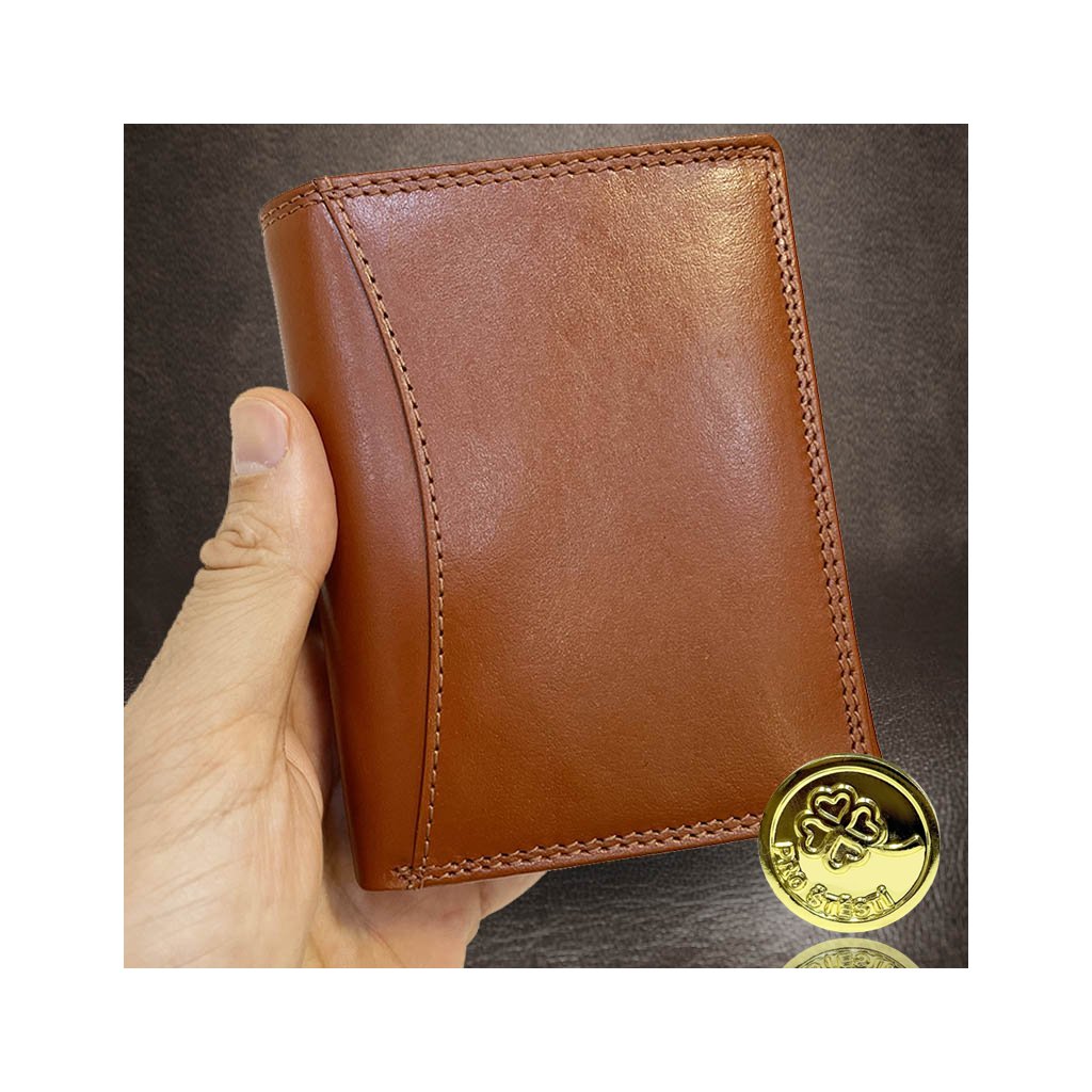 Pánská hnědá kožená peněženka Ricardo Leather RFID s monogramem (ražba) + Akce - zlatá mince Pro štěstí ZDARMA
