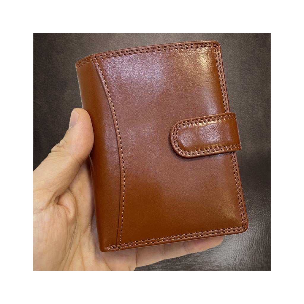 Tmavě hnědá kožená peněženka z měkké NAPPA kůže, na výšku, se zapínáním a RFID ochranou. Včetně ražby monogramu a možnosti laserového textu uvnitř.