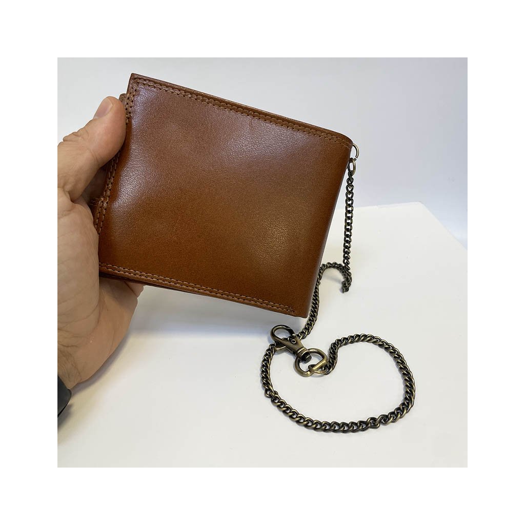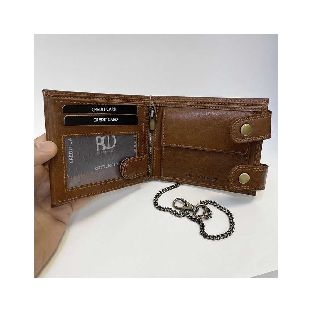 Pánská hnědá kožená peněženka s řetízkem ROYAL Leather s monogramem (ražba) + Akce - zlatá mince Pro štěstí ZDARMA