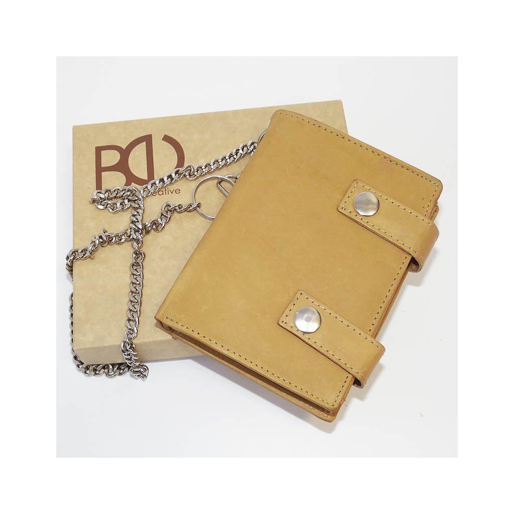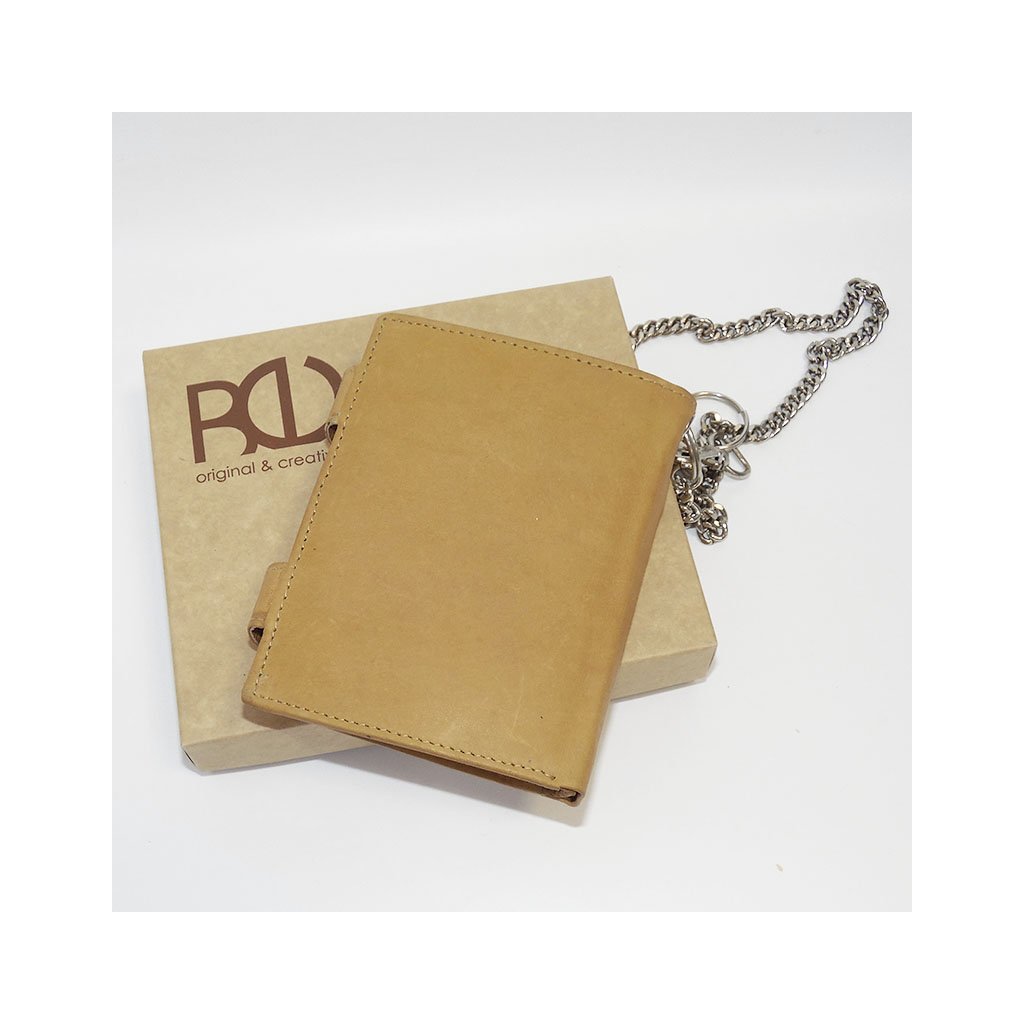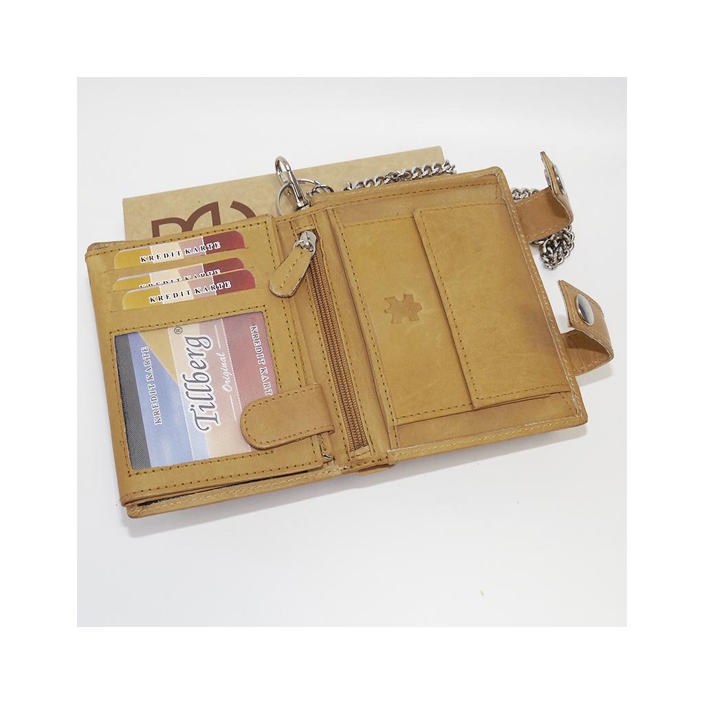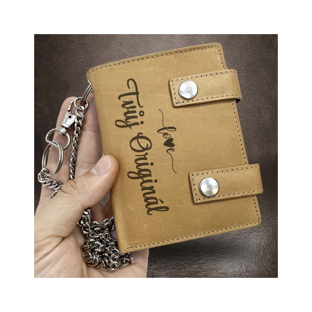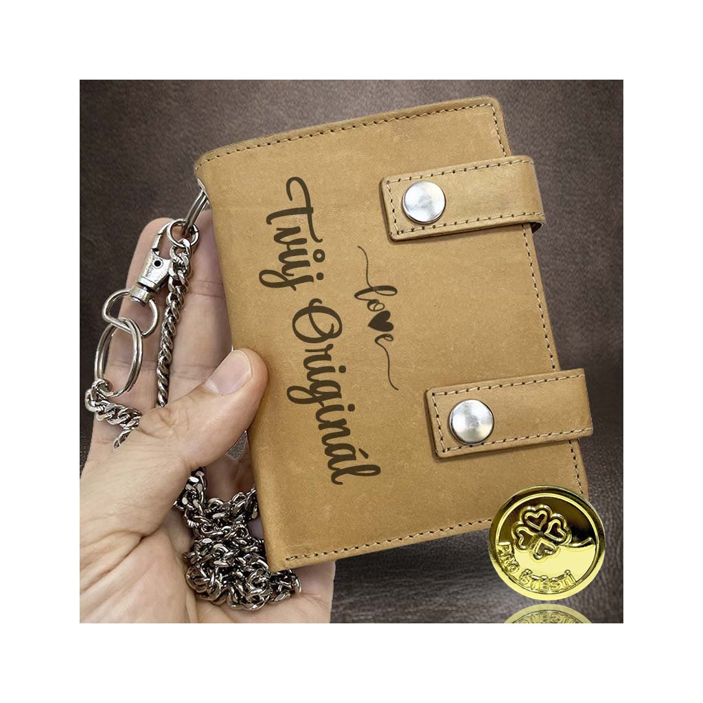 Pánská hnědá kožená peněženka s řetízkem Tillberg Leather s monogramem a vlastním textem + Akce - zlatá mince Pro štěstí ZDARMA
