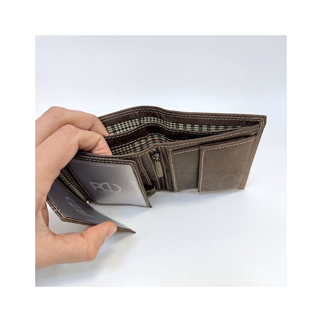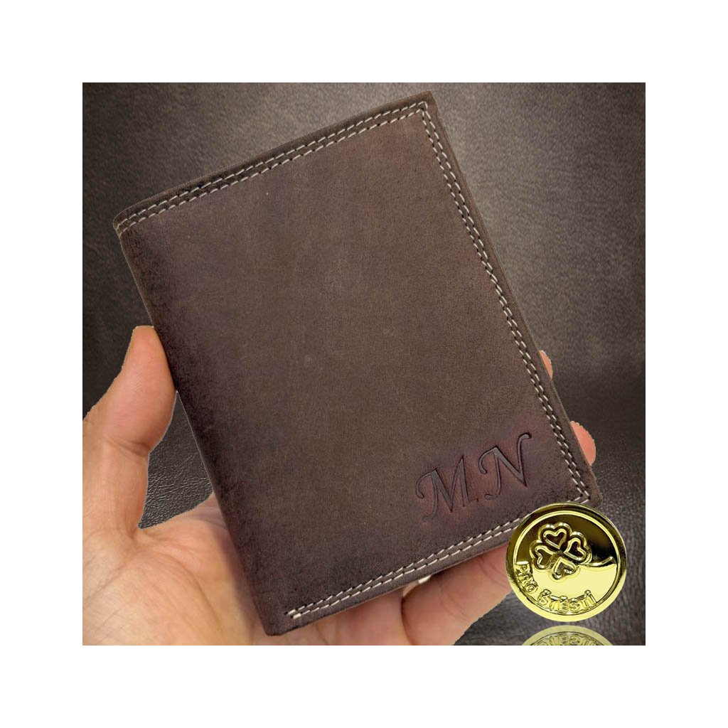 Pánská hnědá kožená peněženka Tiger Leather s monogramem (ražba) + Akce - zlatá mince Pro štěstí ZDARMA