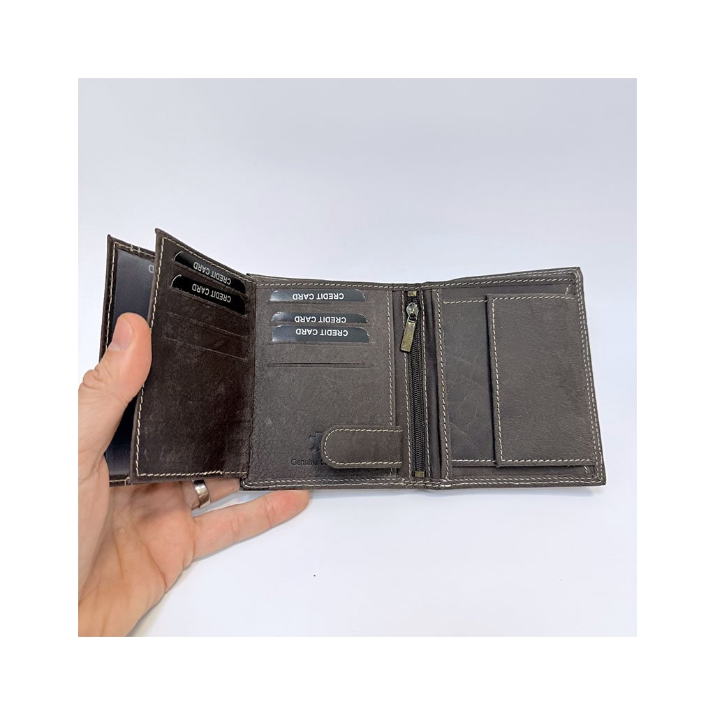 Tiger Leather – tmavě hnědá peněženka na výšku bez zapínání
