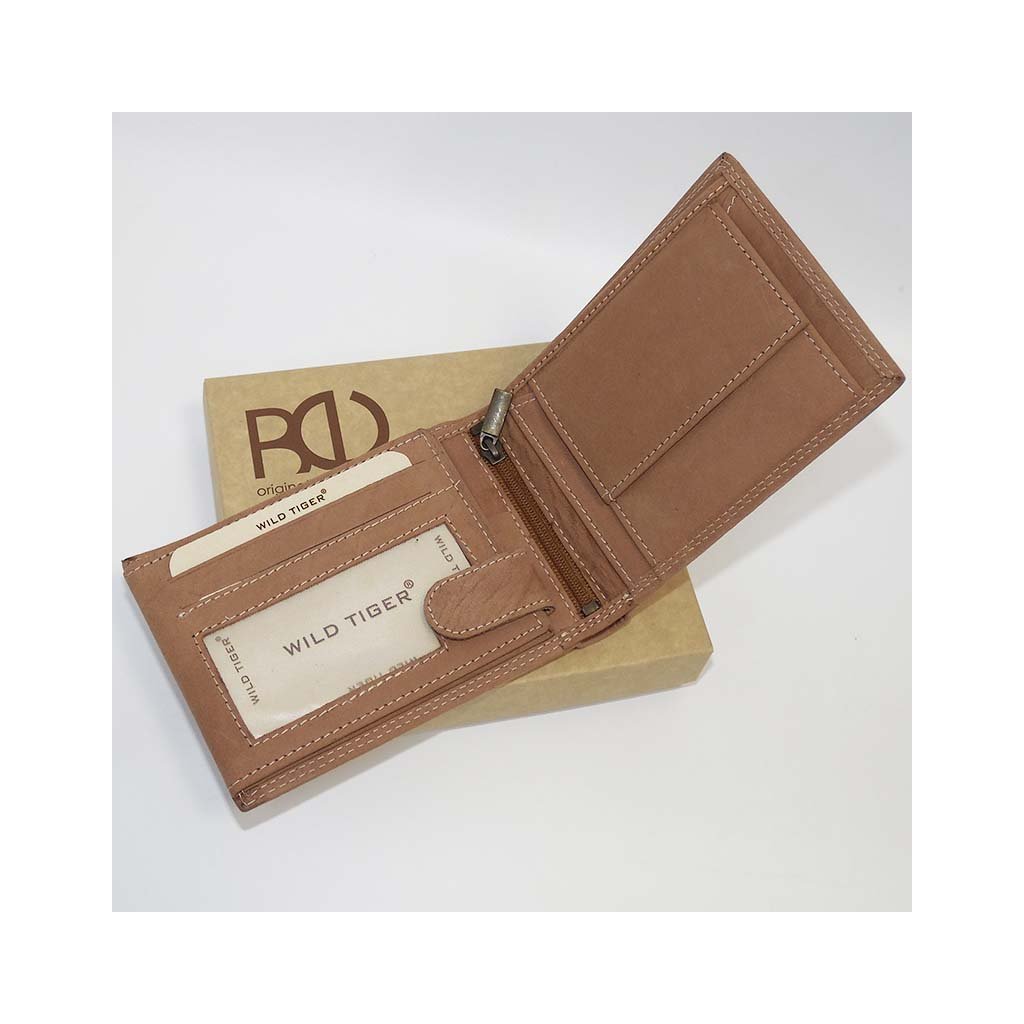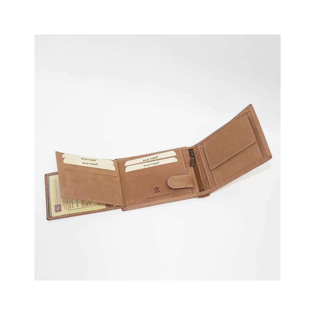 Tiger Leather – světlá hnědá peněženka na šířku bez zapínání
