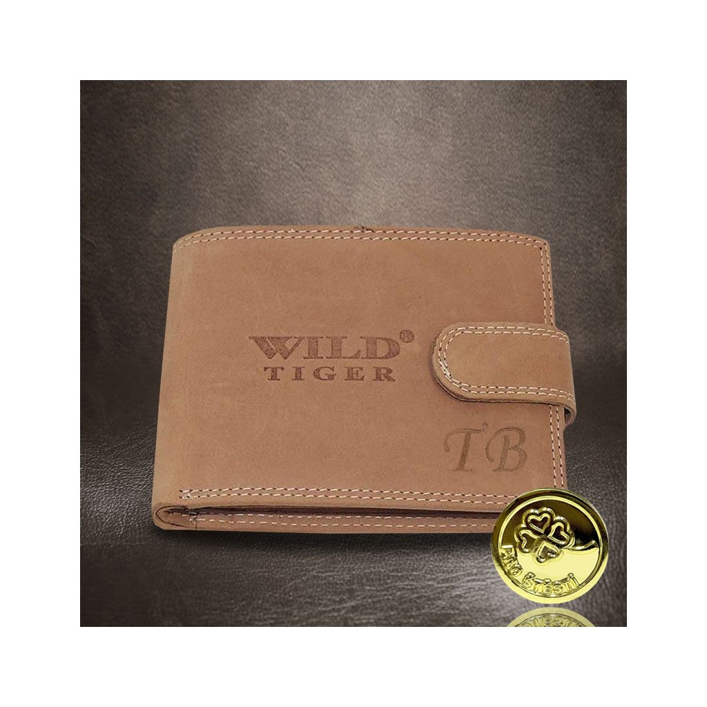 Pánská hnědá kožená peněženka Tiger Leather s monogramem (ražba) + Akce - zlatá mince Pro štěstí ZDARMA
