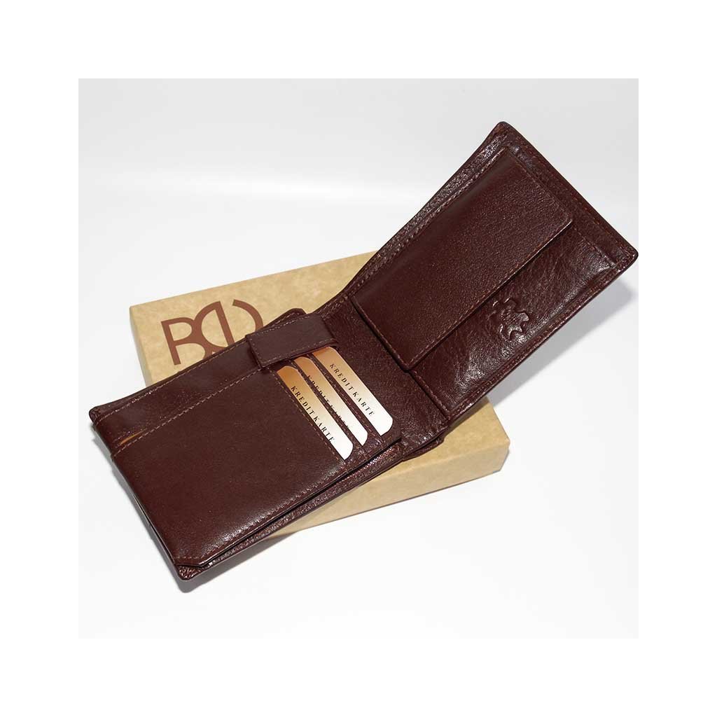 Pánská tmavě hnědá kožená peněženka z NAPPA kůže, bez zapínání, na výšku, s možností ražby monogramu a laserového věnování uvnitř. Prémiová kvalita a osobní styl.