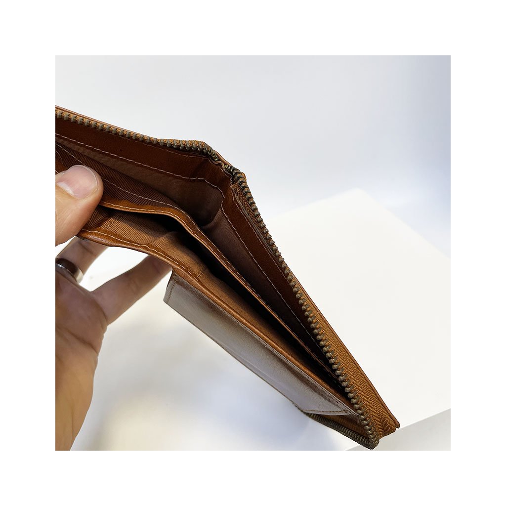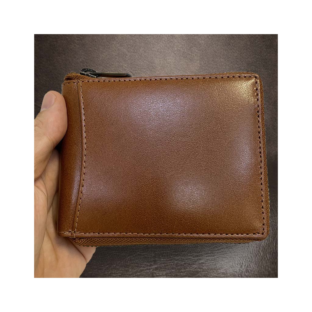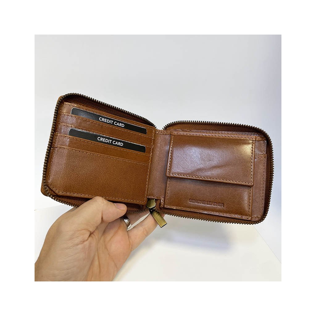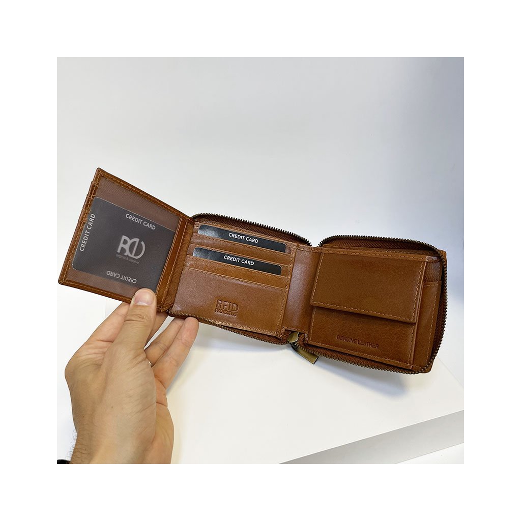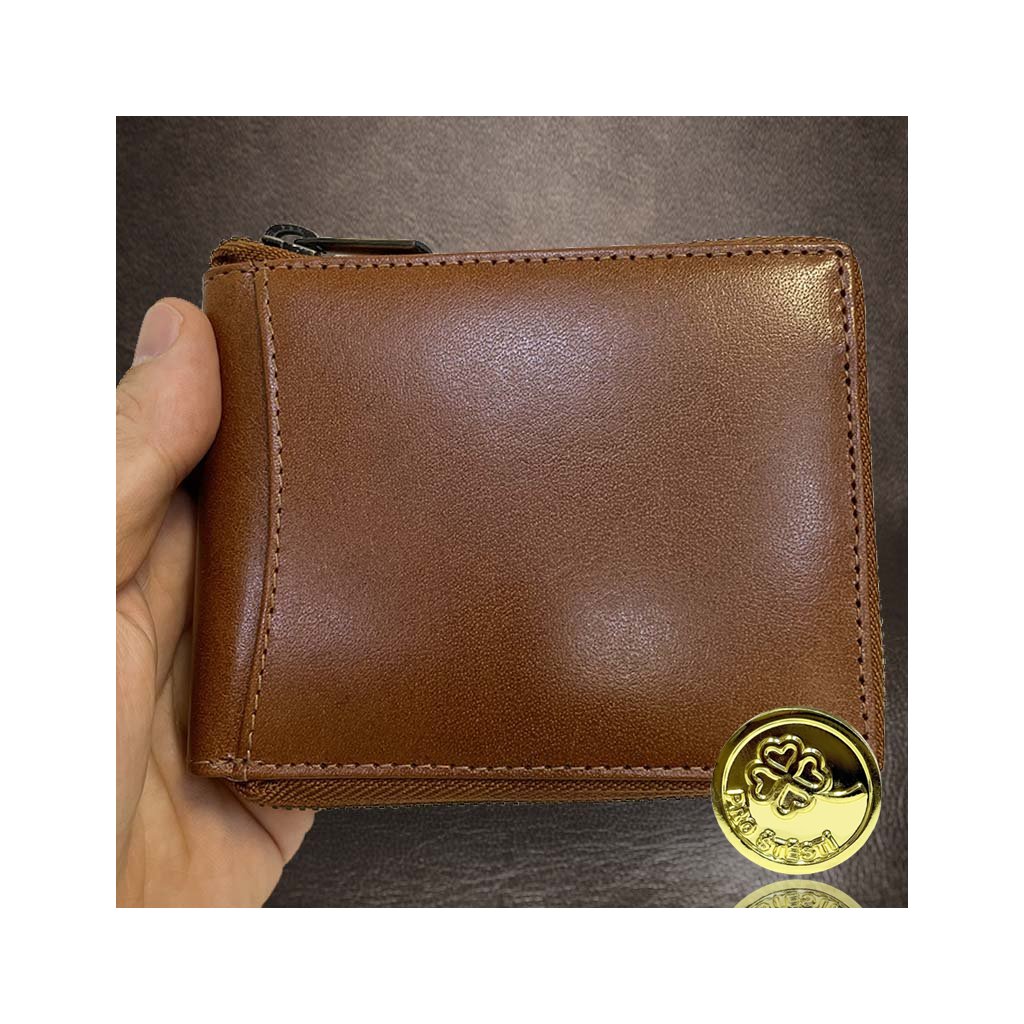 Pánská hnědá kožená peněženka ZIPPER ROYAL Leather s monogramem (ražba) + Akce - zlatá mince Pro štěstí ZDARMA