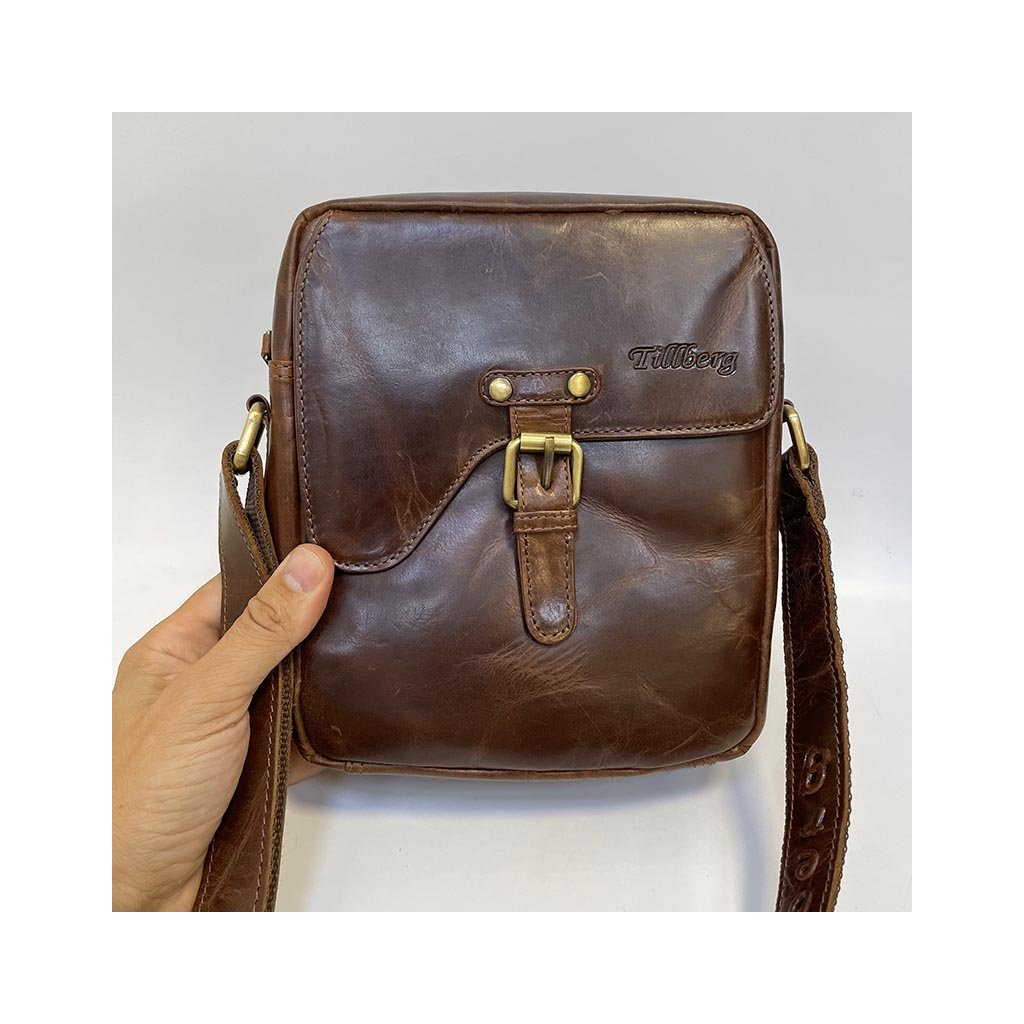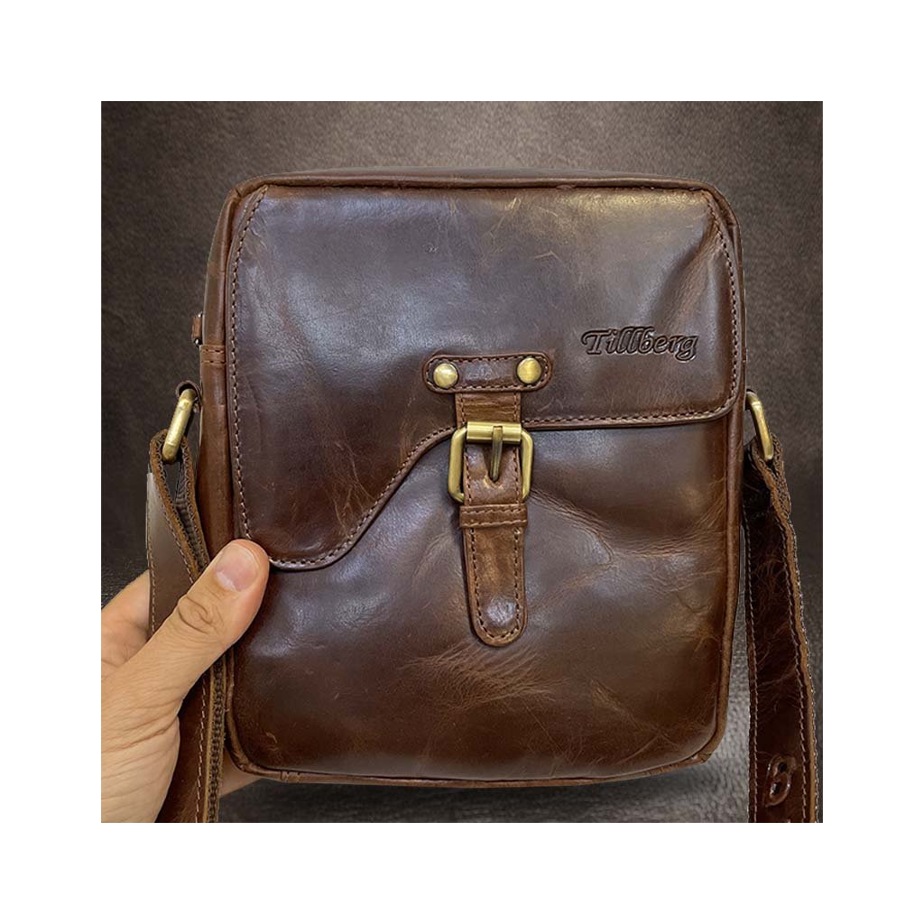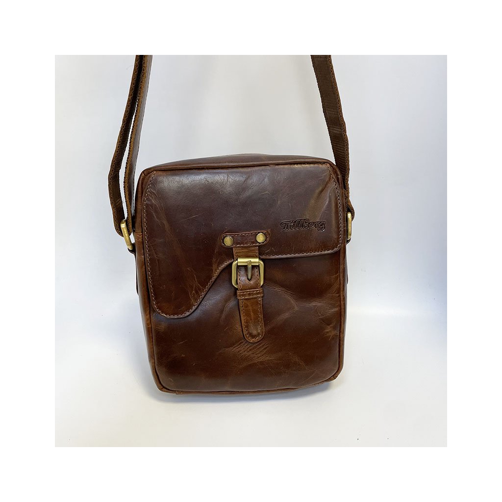 Pánská hnědá TILLBERG Leather kožená crossbody messenger taška přes rameno | velikost M středně velká Bez personalizace - individuální přání řešíme po domluvě.