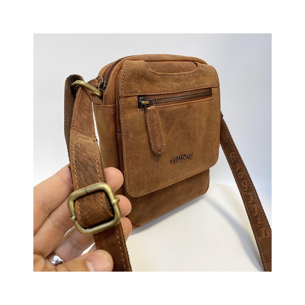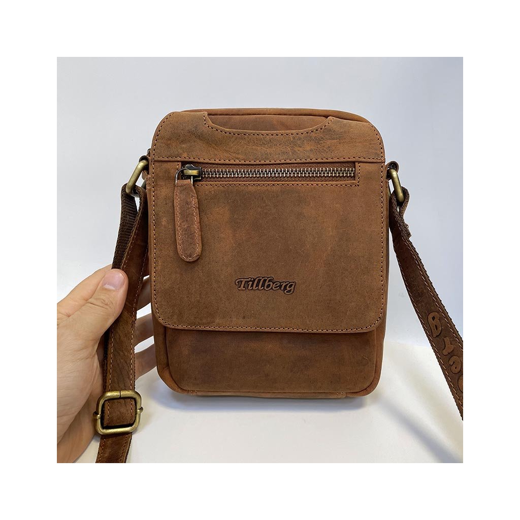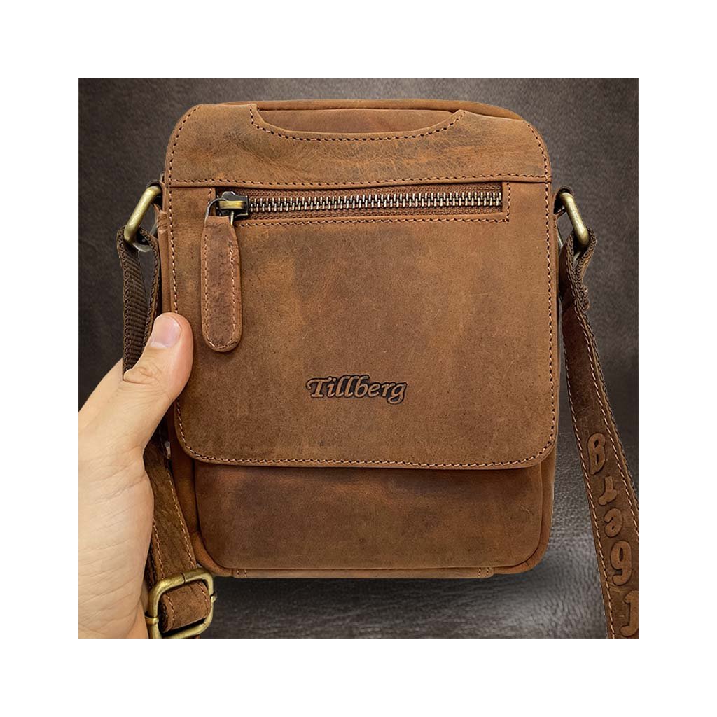 Pánská hnědá TILLBERG Leather kožená crossbody messenger taška přes rameno | velikost S malá Bez personalizace - individuální přání řešíme po domluvě.