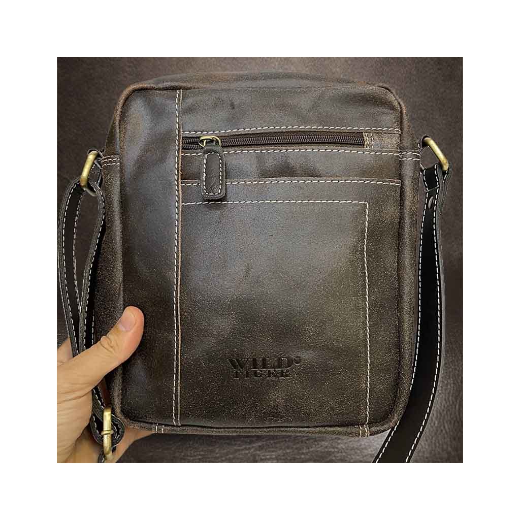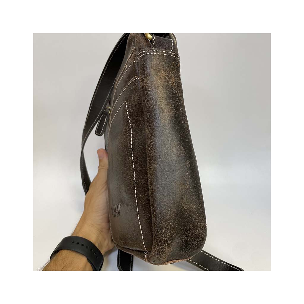 Pánská hnědá WILD Leather kožená crossbody messenger taška přes rameno | velikost L velká Bez personalizace - individuální přání řešíme po domluvě.
