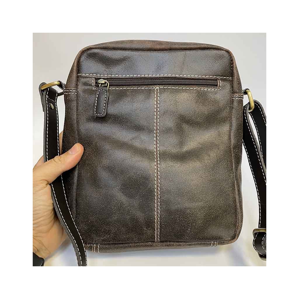 Crossbody kožená messenger taška je v příjemném broušeném hnědém odstínu. Přední kapsa na zip, Po otevření celé tašky na zip máte další kapsu a vnitřní klasické uspořádání, které lze celé zapnout na zip. Výhodou je i další kapsa na zip na zadní straně.