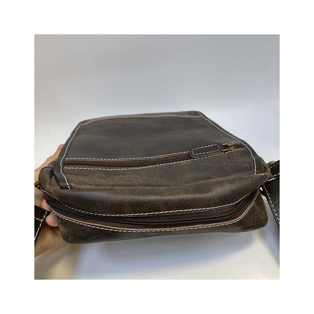 Crossbody kožená messenger taška je v příjemném broušeném hnědém odstínu. Přední kapsa na zip, Po otevření celé tašky na zip máte další kapsu a vnitřní klasické uspořádání, které lze celé zapnout na zip. Výhodou je i další kapsa na zip na zadní straně.