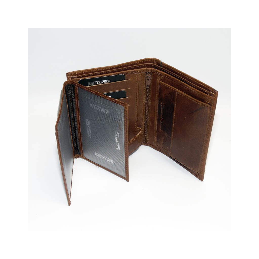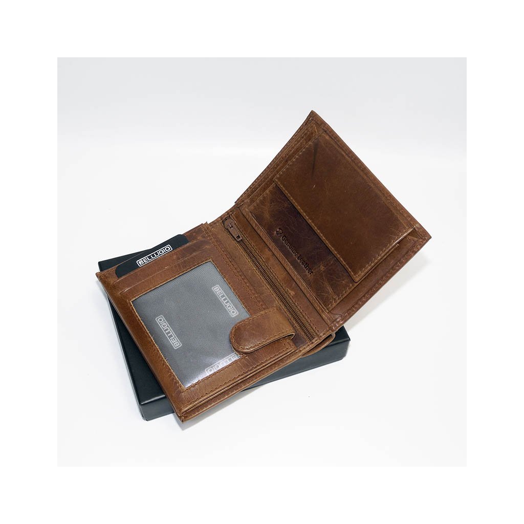Luxusní pánská kožená peněženka Bellugio Leather RFID v nádherném hnědém tónu se zapínáním a ražbou vlastního monogramu. Prémiová pravá kůže, která spojuje styl a bezpečí.