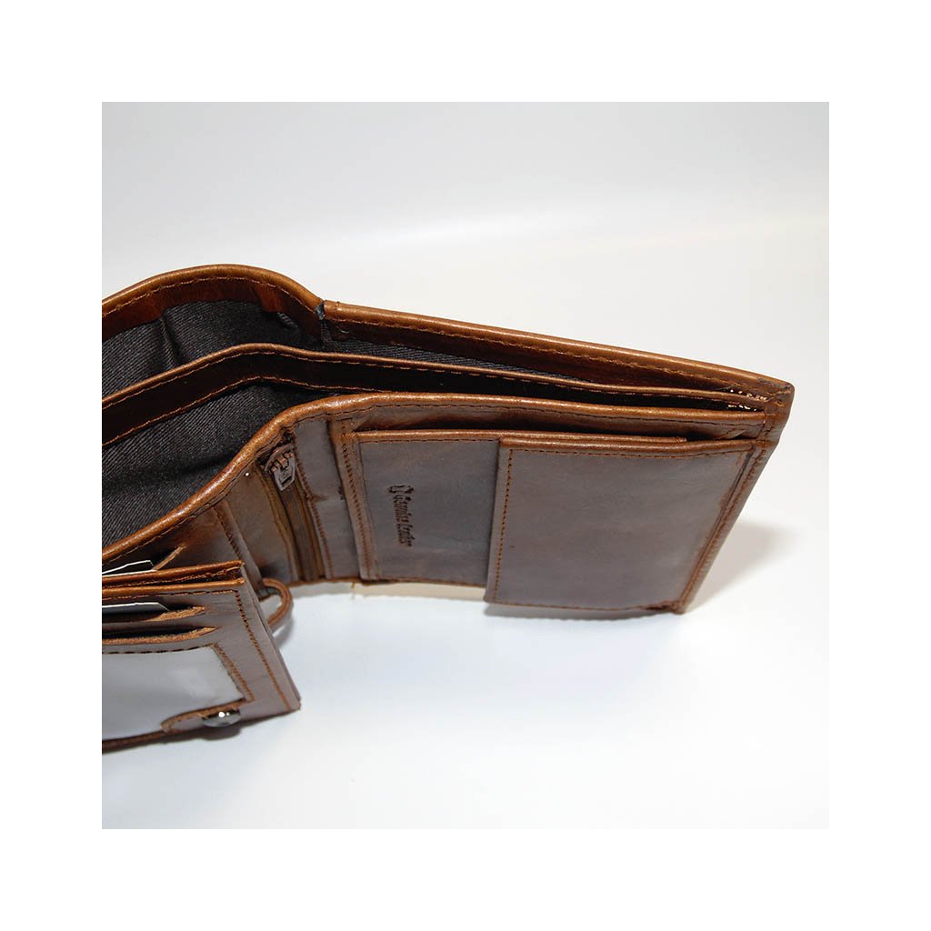 Peněženka je vyrobena z prémiové hovězí kůže, doplněna masivním kovovým řetízkem s karabinou. Praktické dvojité zapínání, dostatek prostoru uvnitř, kapsa na mince i RFID...