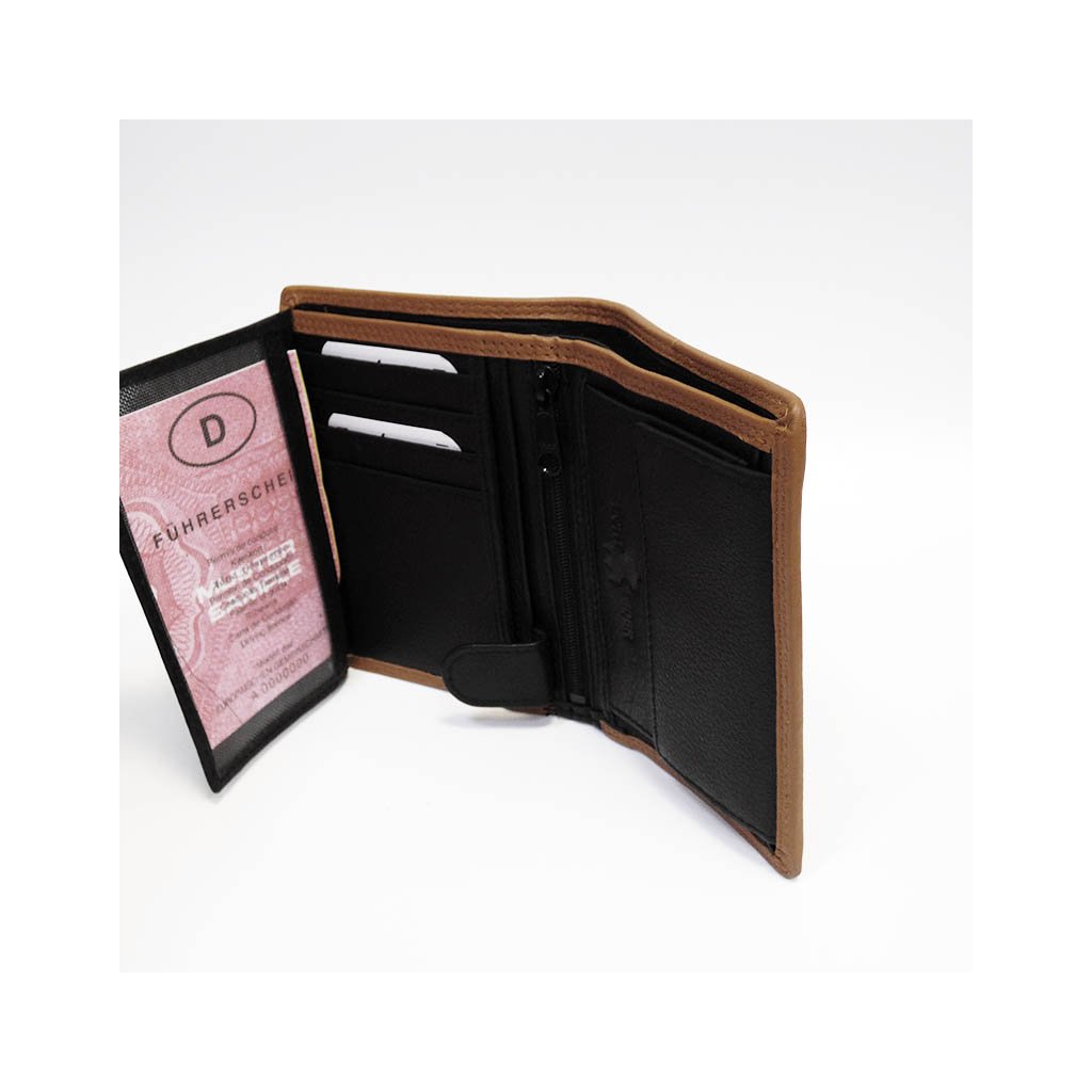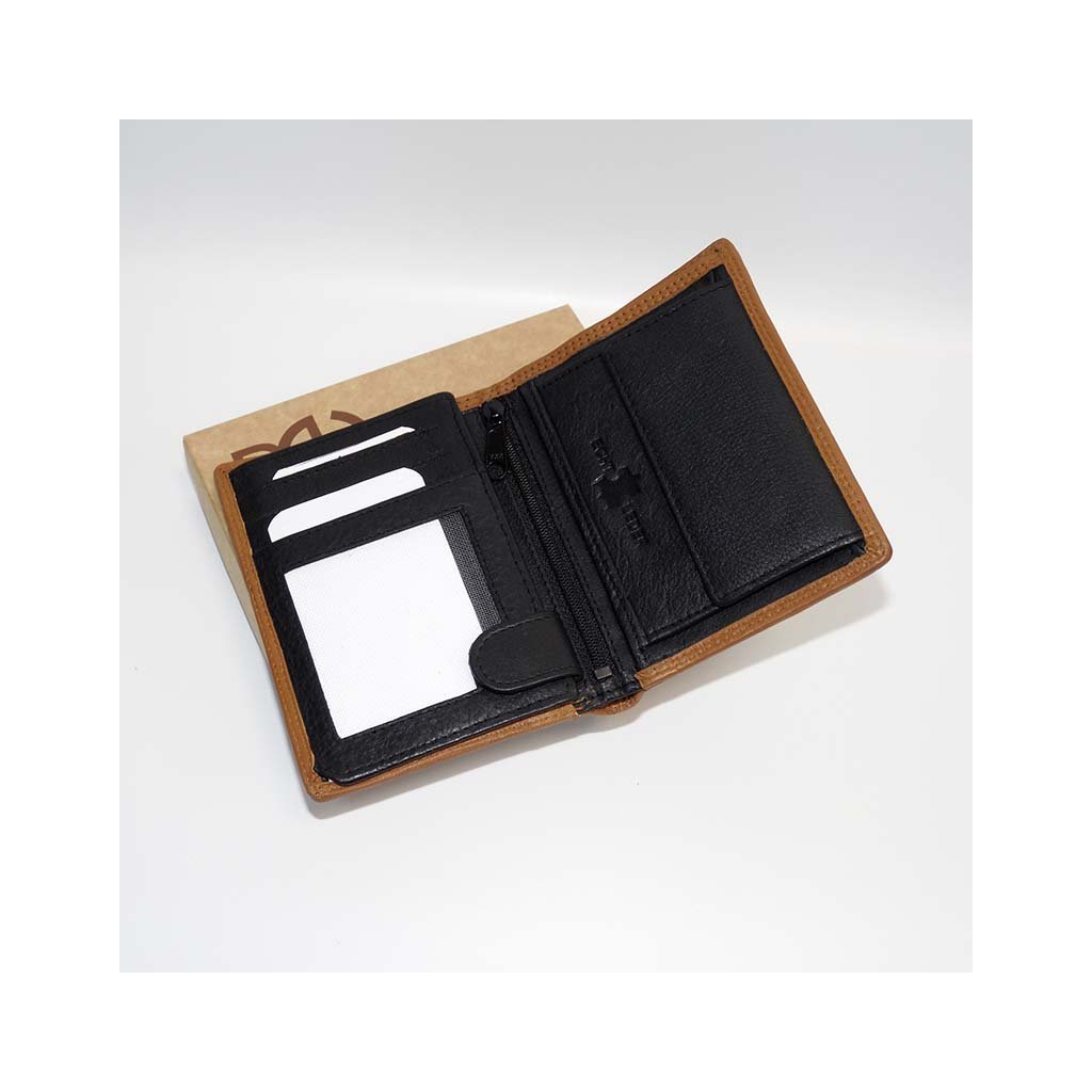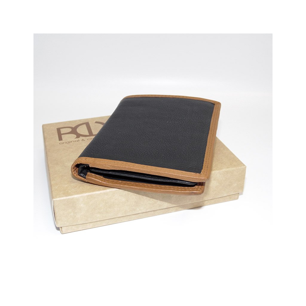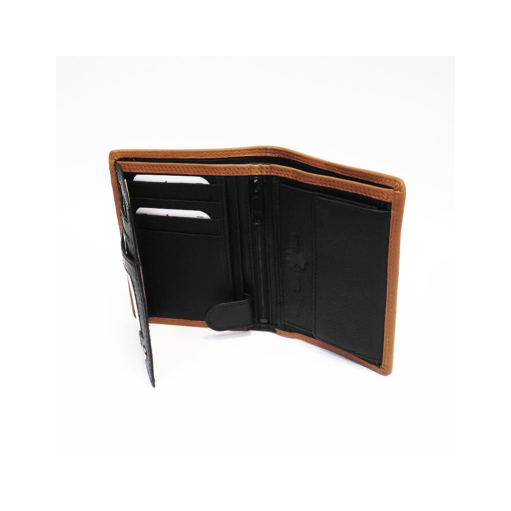 Elegantní pánská kožená peněženka na výšku v kombinaci černé a hnědé kůže působí velmi stylově a nadčasově. Klasické provedení bez zapínání ji činí praktickou, štíhlou a snadno nositelnou v každé kapse. Vyrobena z pravé hovězí kůže, pečlivě prošitá s důrazem na kvalitu a detaily.