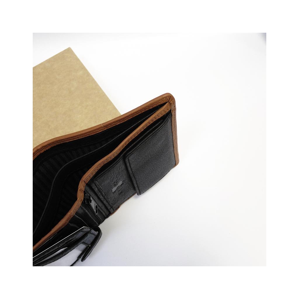 Peněženka je vyrobena z kvalitní černo-hnědé hovězí kůže, doplněna RFID ochranou pro bezpečné používání. Jednoduchý, tradiční design potěší každého, kdo si potrpí na klasiku....