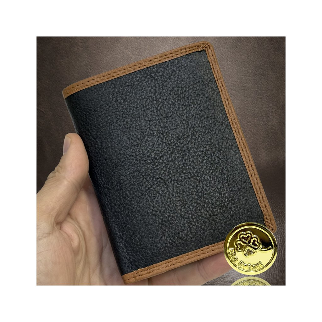 Pánská kožená peněženka COMBO BEORIGINAL Leather s monogramem (ražba) + Akce - zlatá mince Pro štěstí ZDARMA