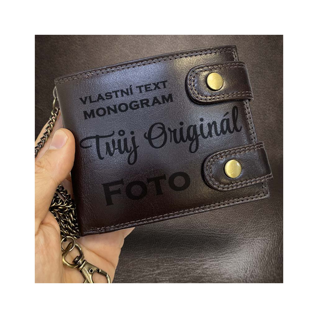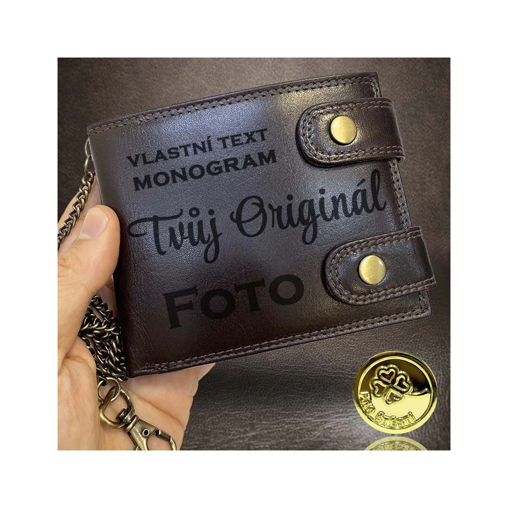 Pánská kožená peněženka Premium Leather s monogramem a vlastním textem nebo fotkou + Akce - zlatá mince Pro štěstí ZDARMA