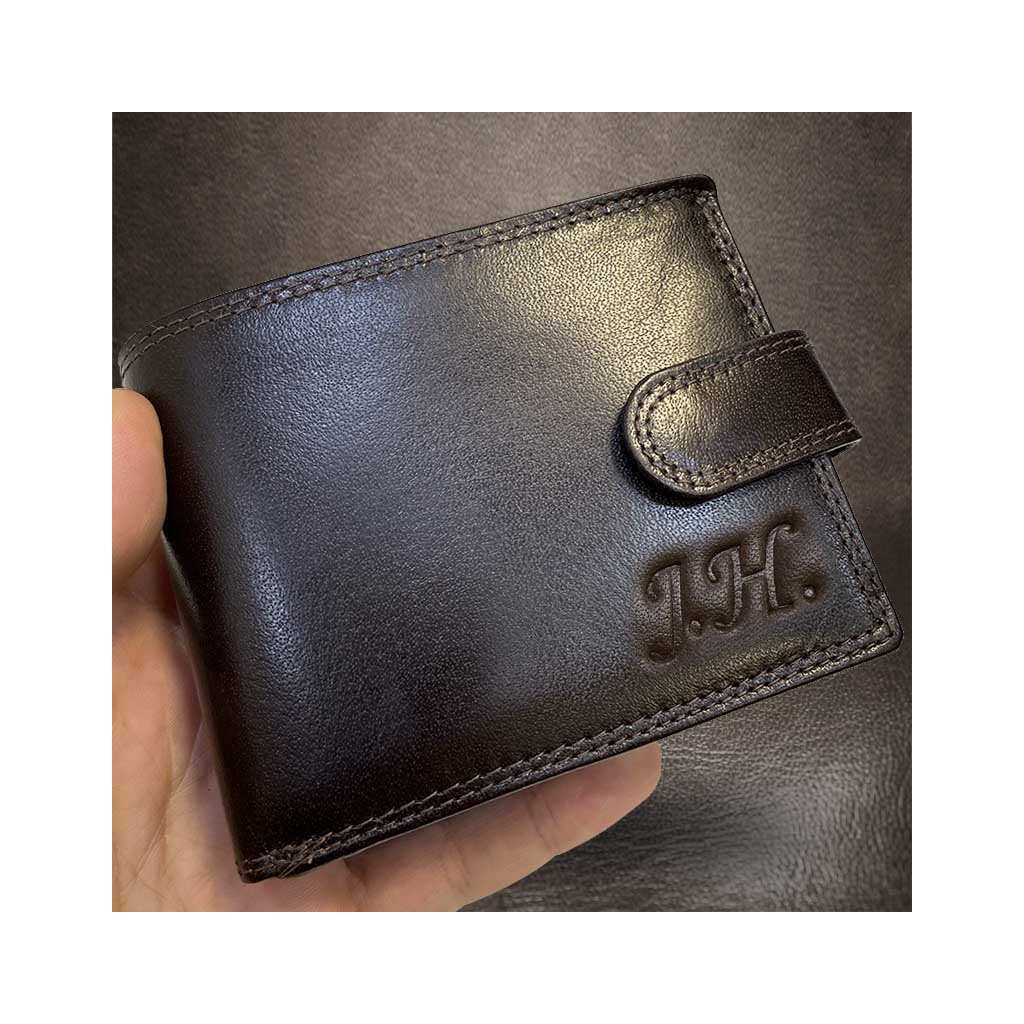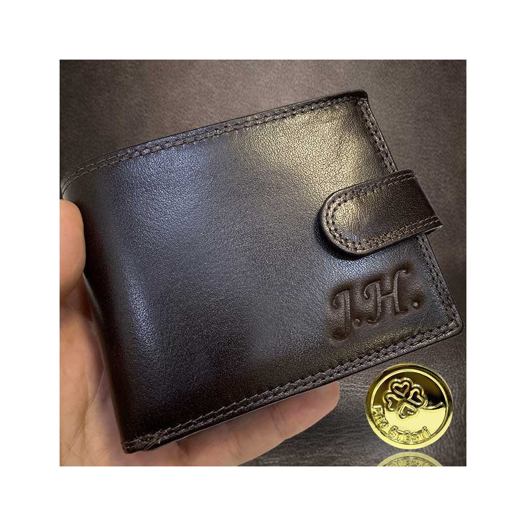 Pánská tmavě hnědá NAPPA kožená peněženka RFID BEORIGINAL Leather s ražbou monogramu, ochrana RFID, ruční šití a laserová personalizace uvnitř. Luxusní a praktický doplněk.
