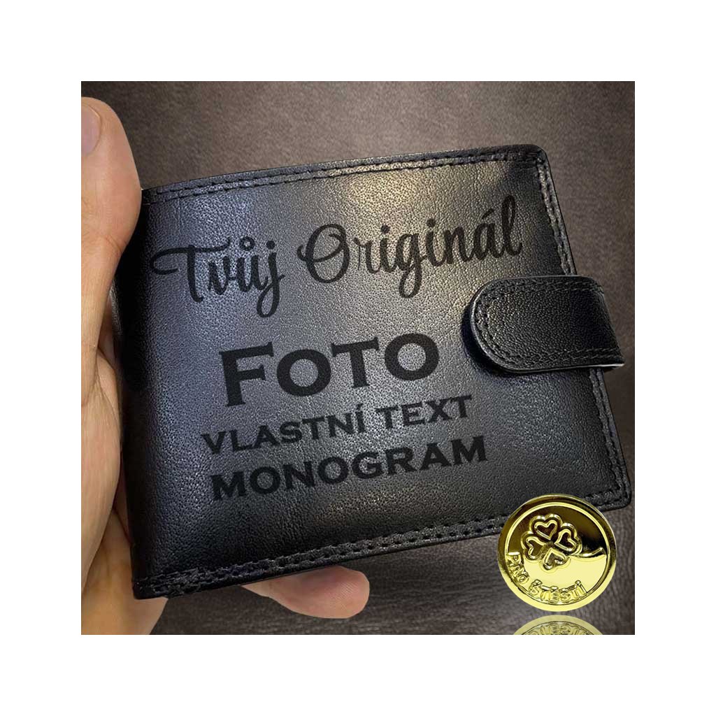 Pánská kožená peněženka ROYAL Leather s monogramem a vlastním textem + Akce - zlatá mince Pro štěstí ZDARMA