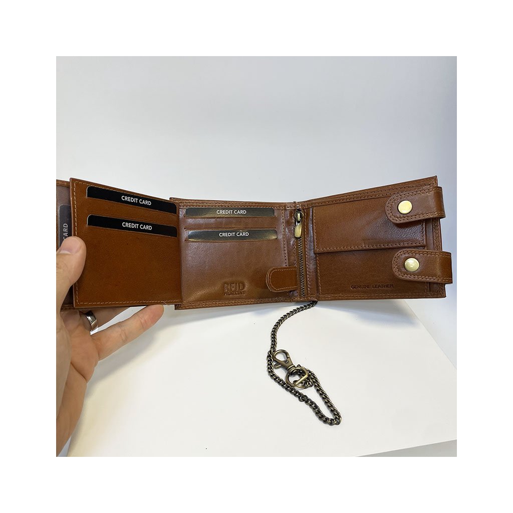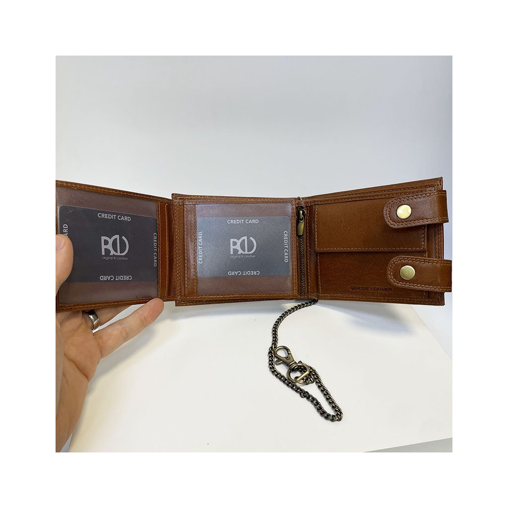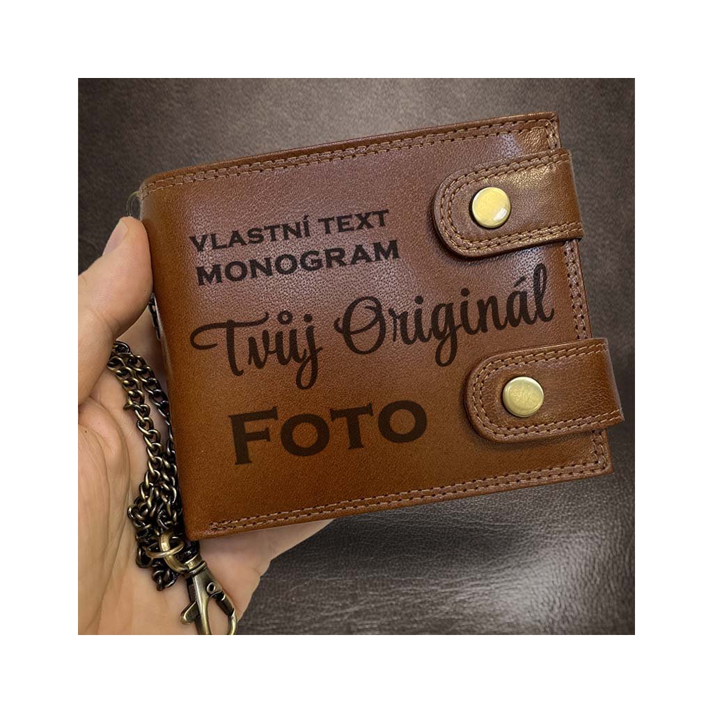 Pánská kožená peněženka ROYAL Leather s řetízkem – s fotkou, textem nebo monogramem