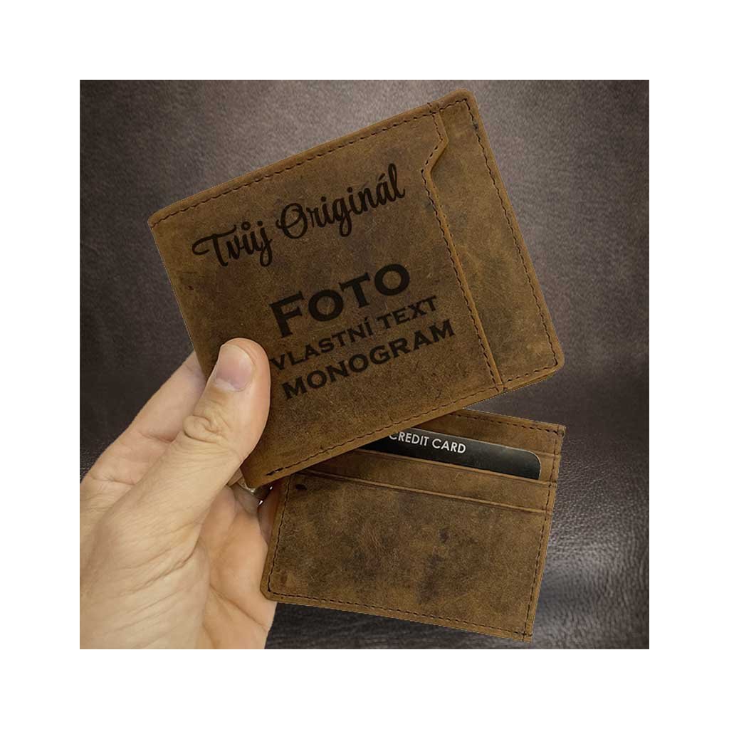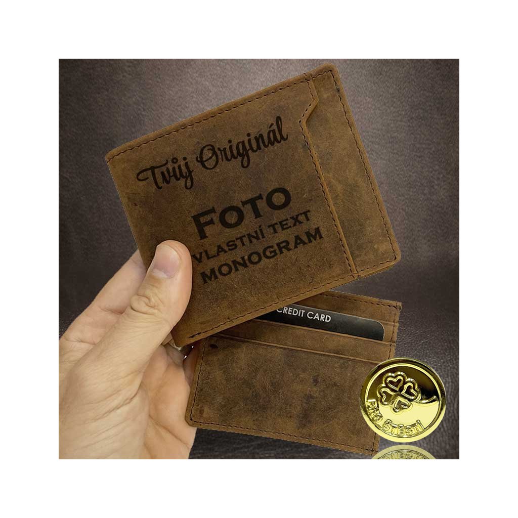 Pánská luxusní kožená peněženka 2v1 hnědá s monogramem, textem nebo fotkou + Akce - zlatá mince Pro štěstí ZDARMA