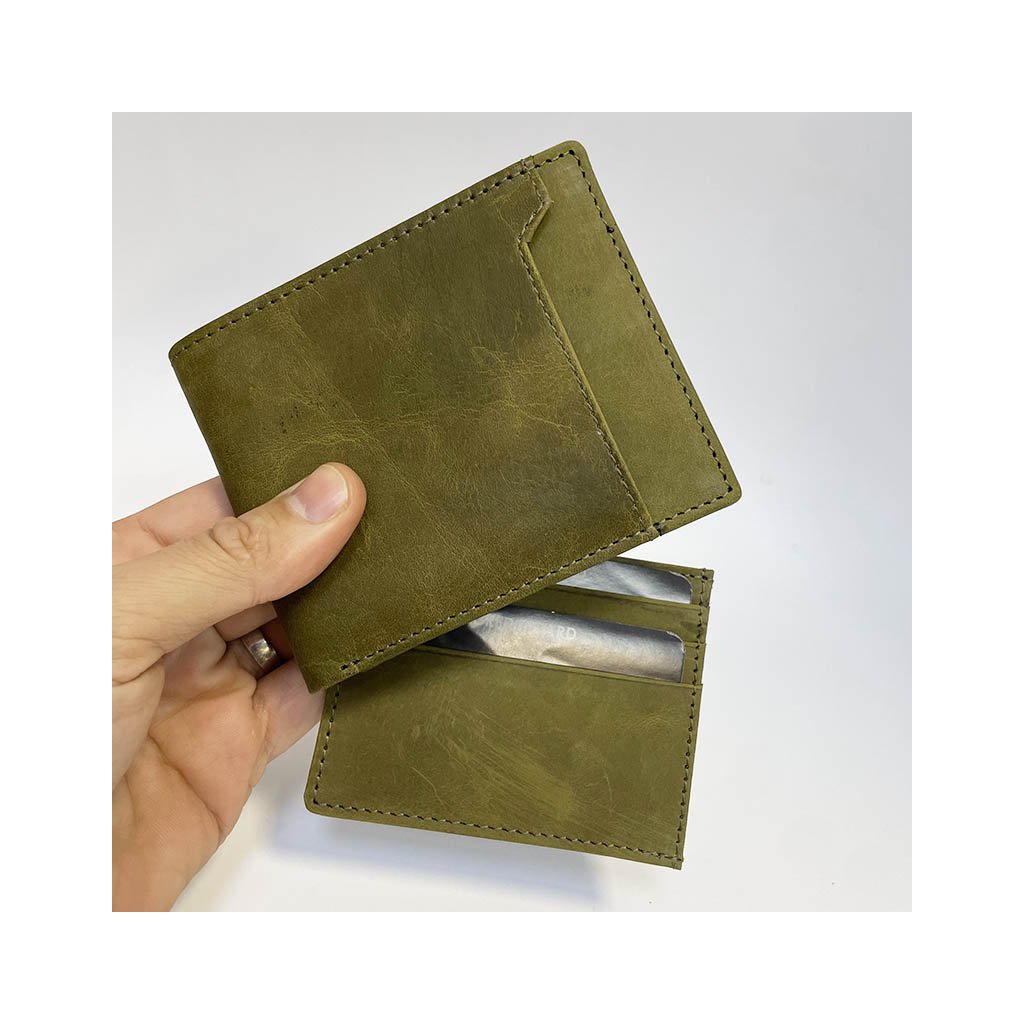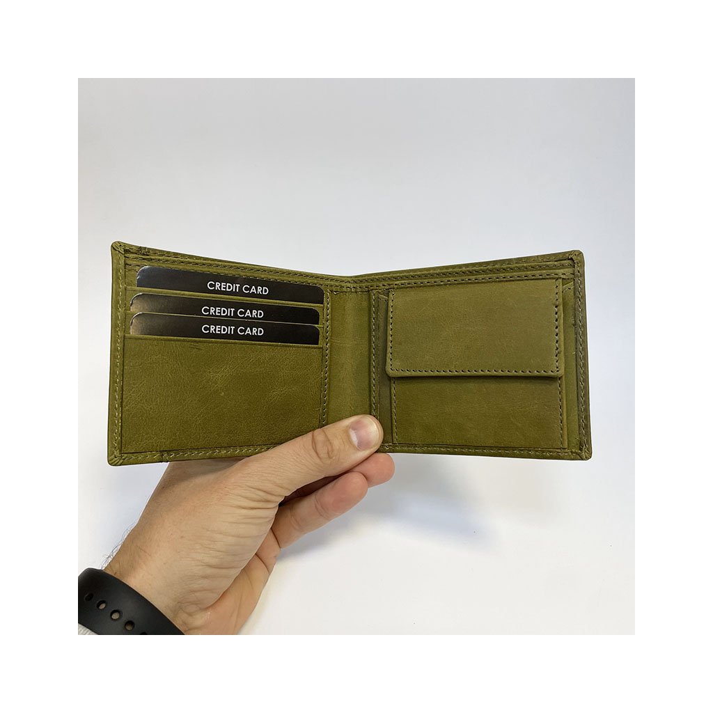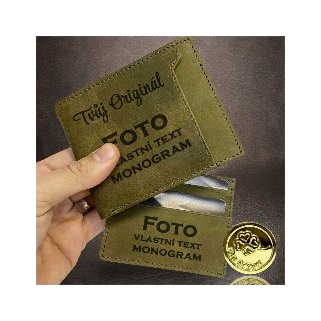 Pánská luxusní kožená peněženka 2v1 zelená s monogramem, textem nebo fotkou + Akce - zlatá mince Pro štěstí ZDARMA