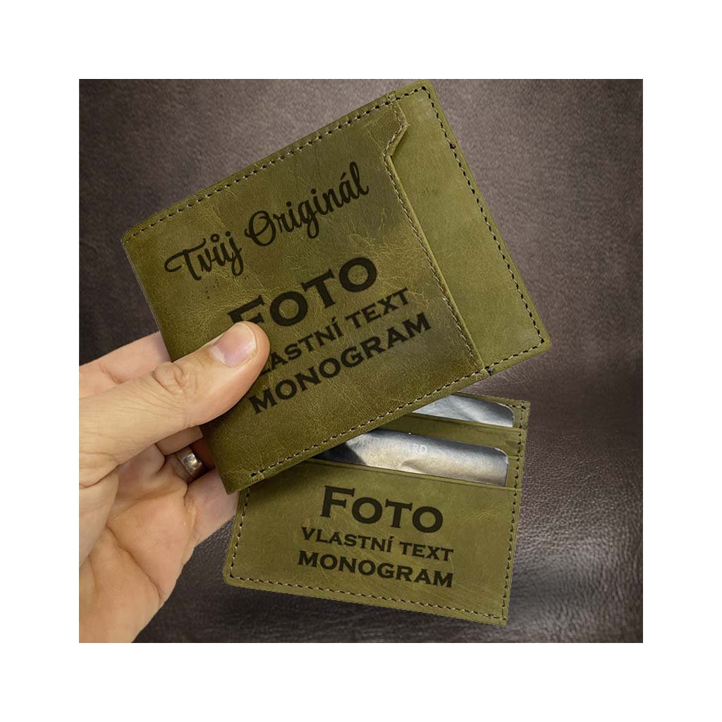 Pánská luxusní kožená peněženka 2v1 – zelená s monogramem, textem nebo fotkou