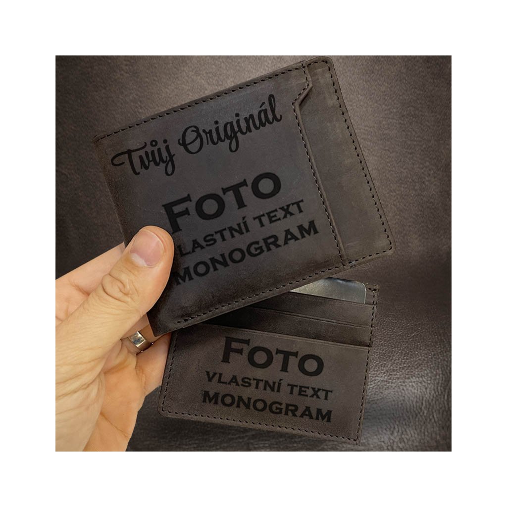 Pánská luxusní kožená SLIM peněženka 2v1 – tmavě hnědá s monogramem, textem nebo fotkou