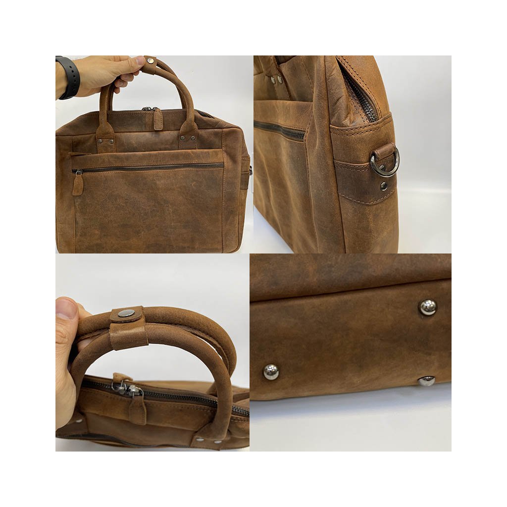 Tato business taška je v nádherné naturálním hndědém odstínu. Je velmi oblíbená nejen pro svou dokonalou ruční práci, kvalitu použité extrémně prémiové hovězí kůže, hlavně ale praktičnost. Taška je opravdovou vizitkou na kterou budete právem hrdí. Nedílnou součástí jsou detaily, které vás ujistí, že se při výrobě myslelo na vše. Taška má zespodu ochranné kovové části, nepoškodíte tak kůži při odkládání, pevná polstrovaná ucha na ruční nošení můžete navíc ještě zapnout na klip. Výhodou je i popruh na zadní části, ideálně na přichycení k madlu kufru při cestování apod.