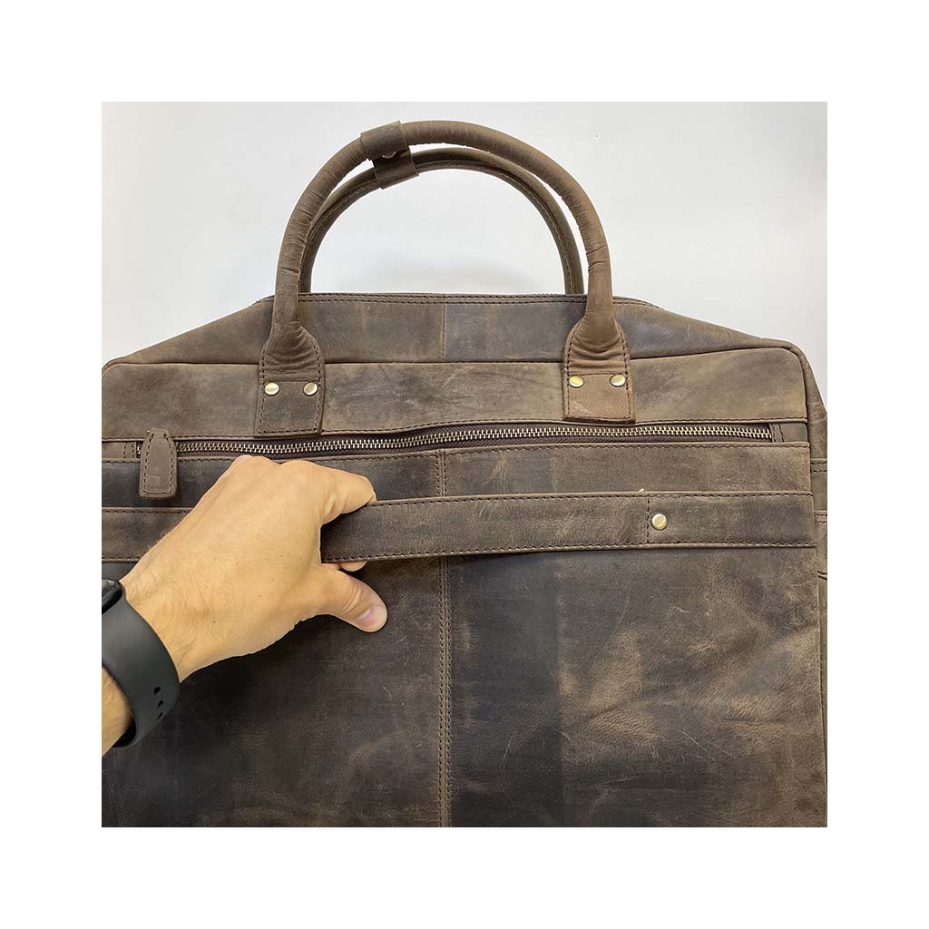Tato business taška je v nádherné naturálním hndědém odstínu. Je velmi oblíbená nejen pro svou dokonalou ruční práci, kvalitu použité extrémně prémiové hovězí kůže, hlavně ale praktičnost. Taška je opravdovou vizitkou na kterou budete právem hrdí. Nedílnou součástí jsou detaily, které vás ujistí, že se při výrobě myslelo na vše. Taška má zespodu ochranné kovové části, nepoškodíte tak kůži při odkládání, pevná polstrovaná ucha na ruční nošení můžete navíc ještě zapnout na klip. Výhodou je i popruh na zadní části, ideálně na přichycení k madlu kufru při cestování apod.