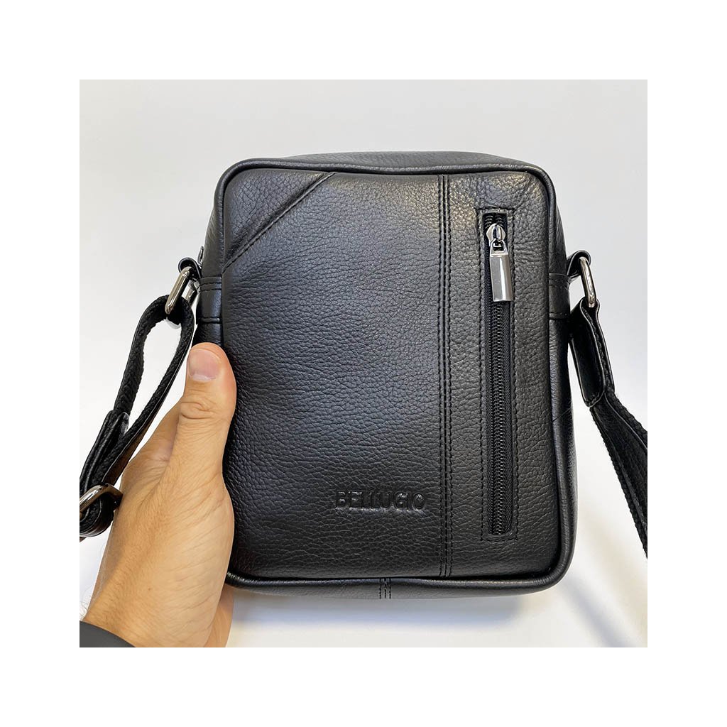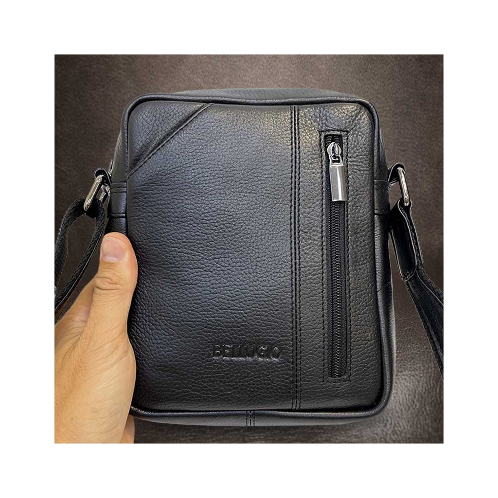 Pánská malá černá BELLUGIO Leather kožená crossbody messenger taška přes rameno | velikost S malá Bez personalizace - individuální přání řešíme po domluvě.