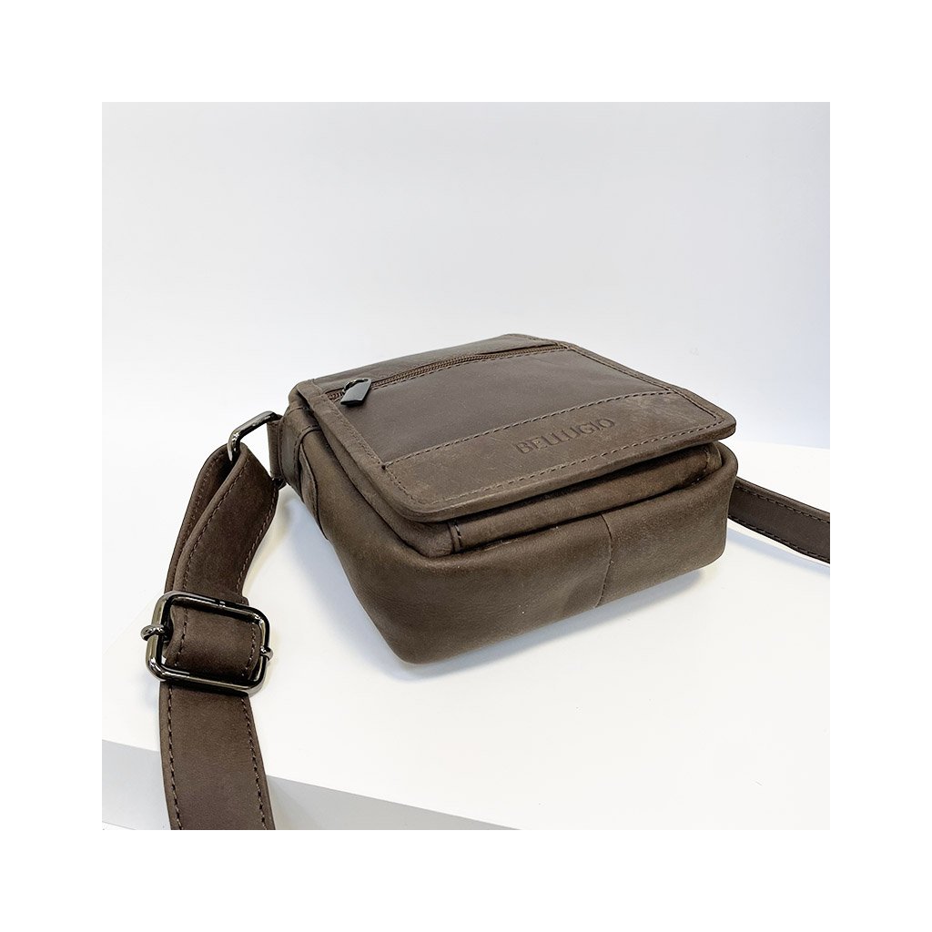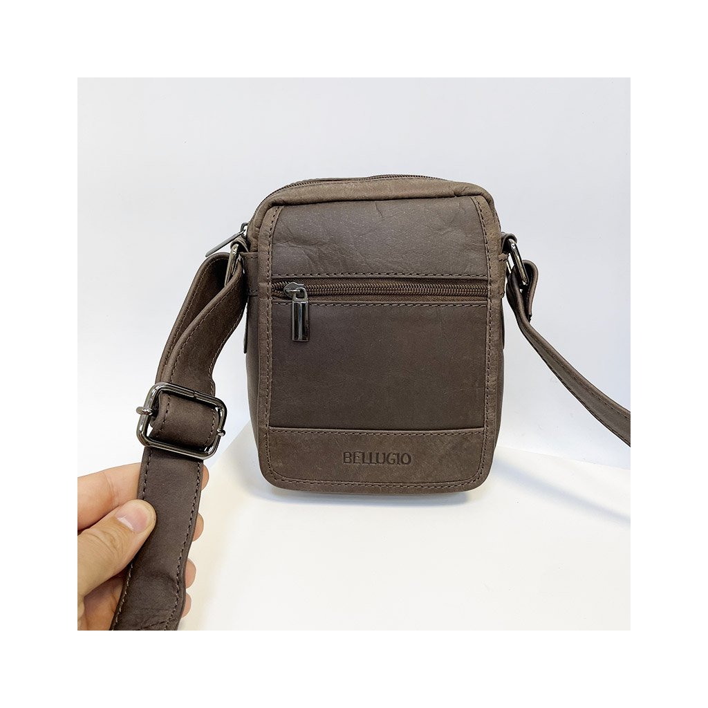 Pánská malá hnědá BELLUGIO Leather kožená crossbody messenger taška přes rameno | velikost XS malá Bez personalizace - individuální přání řešíme po domluvě.