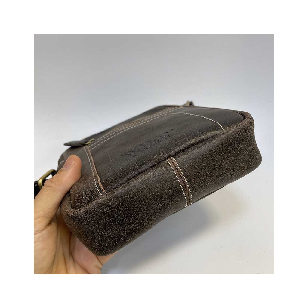Crossbody kožená messenger taška je v originálním broušeném hnědém odstínu. Přední kapsa na zip. Celá taška má hlavní kapsu na zip, je menších rozměrů, ideální na cestování, kdy do ní dáte s přehledem vše nezbytné. Součástí je nastavitelný popruh.