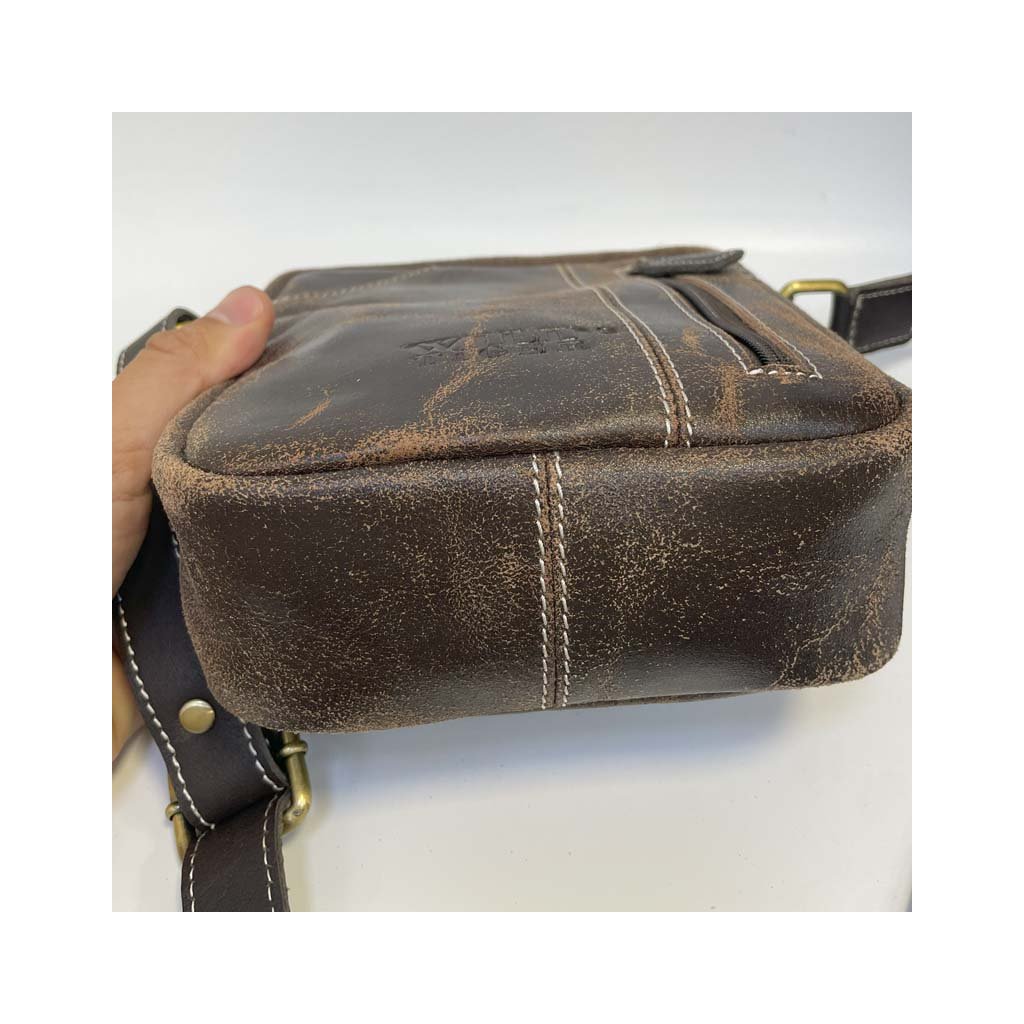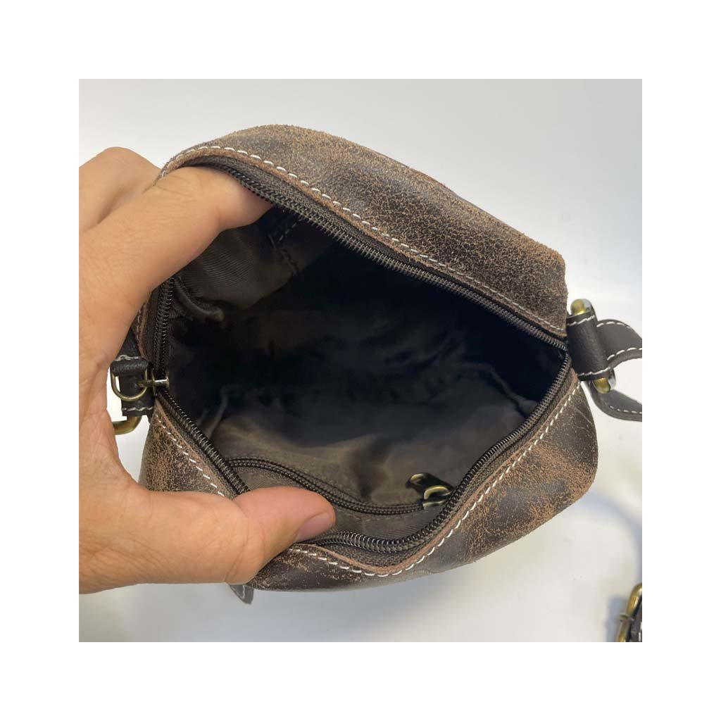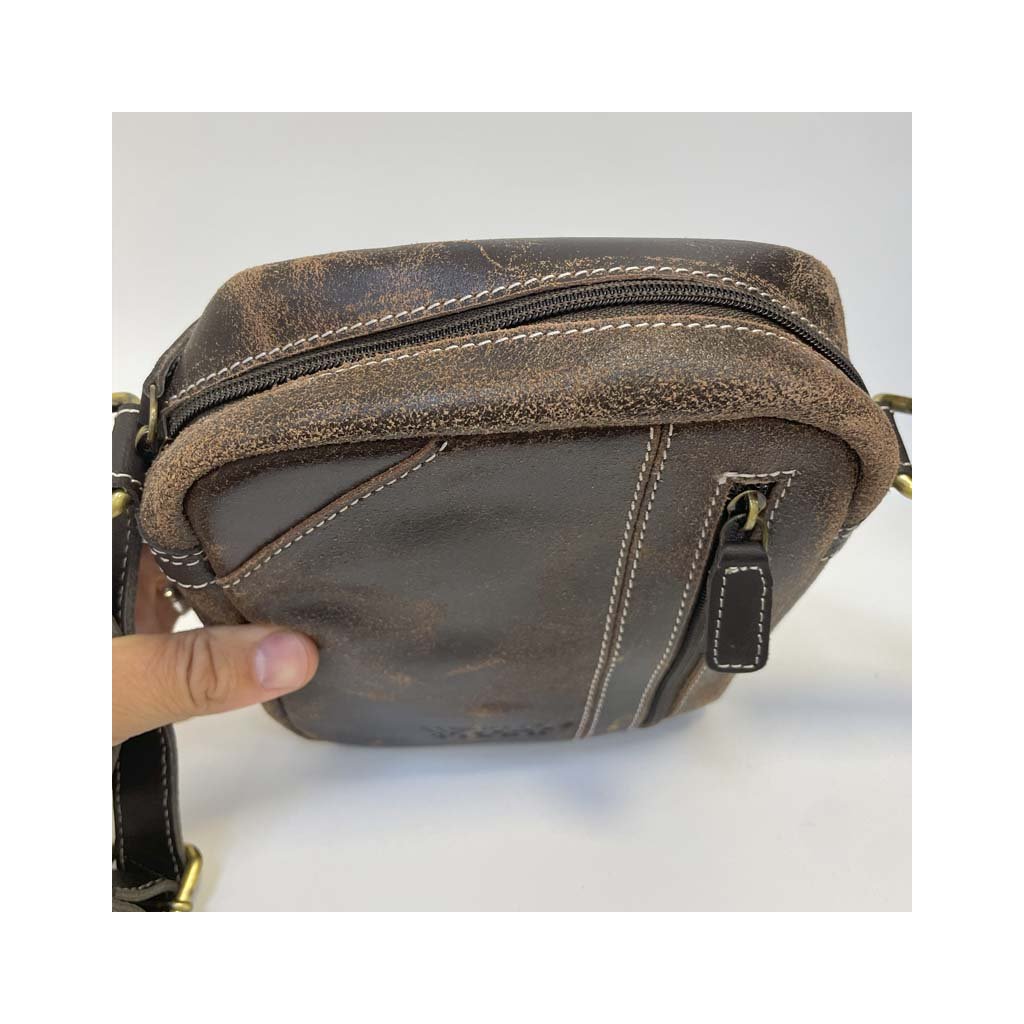 Crossbody kožená messenger taška je v originálním broušeném hnědém odstínu. Přední kapsa na zip. Celá taška má hlavní kapsu na zip, je menších rozměrů, ideální na cestování, kdy do ní dáte s přehledem vše nezbytné. Součástí je nastavitelný popruh.